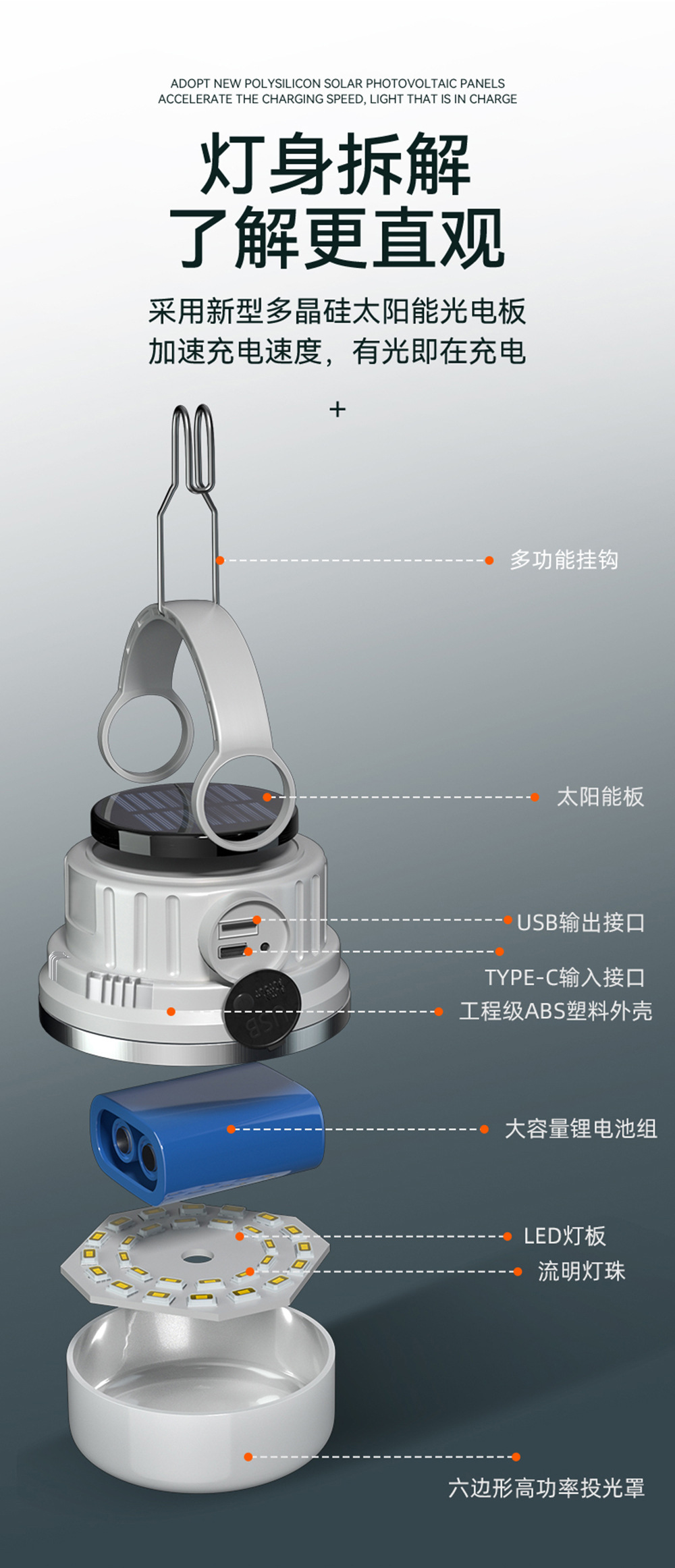 新款充电锂电池帐篷灯多功能手提露营灯户外复古野营灯露营氛围灯