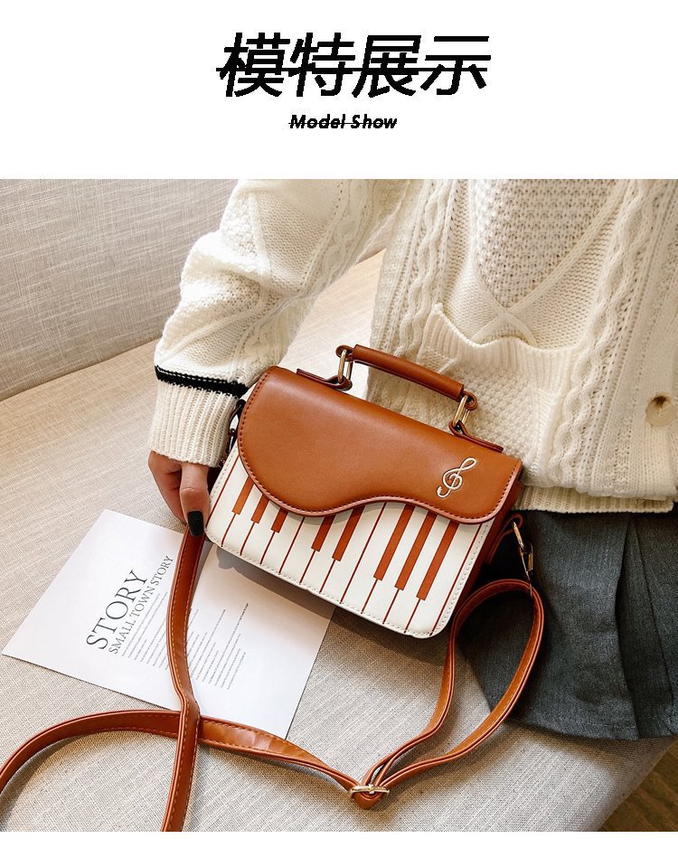 单肩包钢琴音符小挎包手提女包时尚撞色刺绣小方包少女甜美个性包