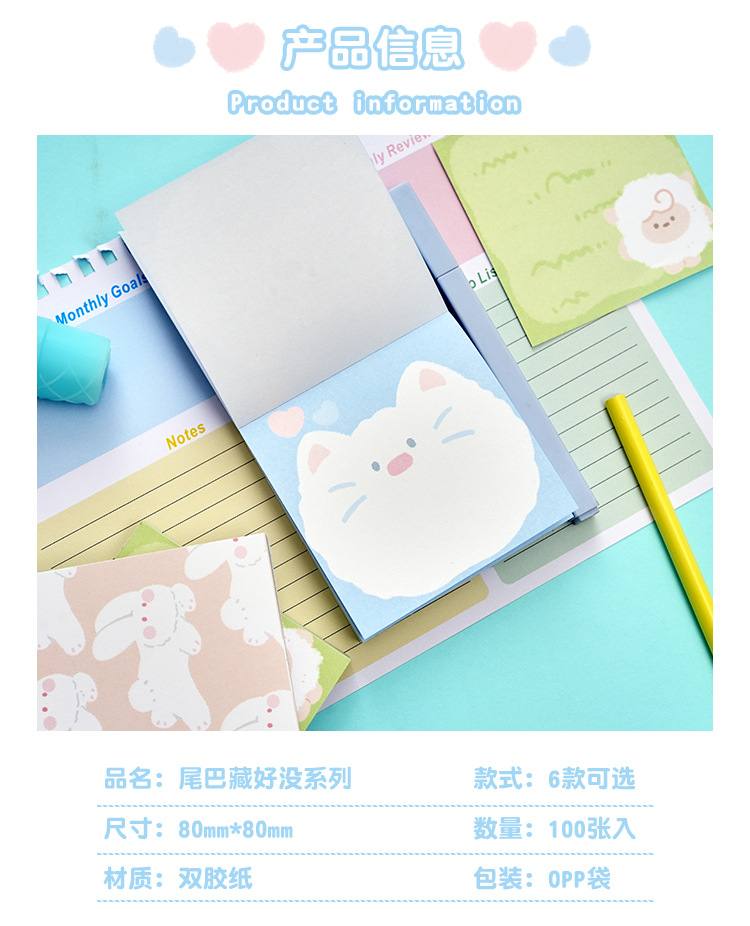早沫100张便签 尾巴藏好没系列 创意可爱卡通小兔学生留言本 6款