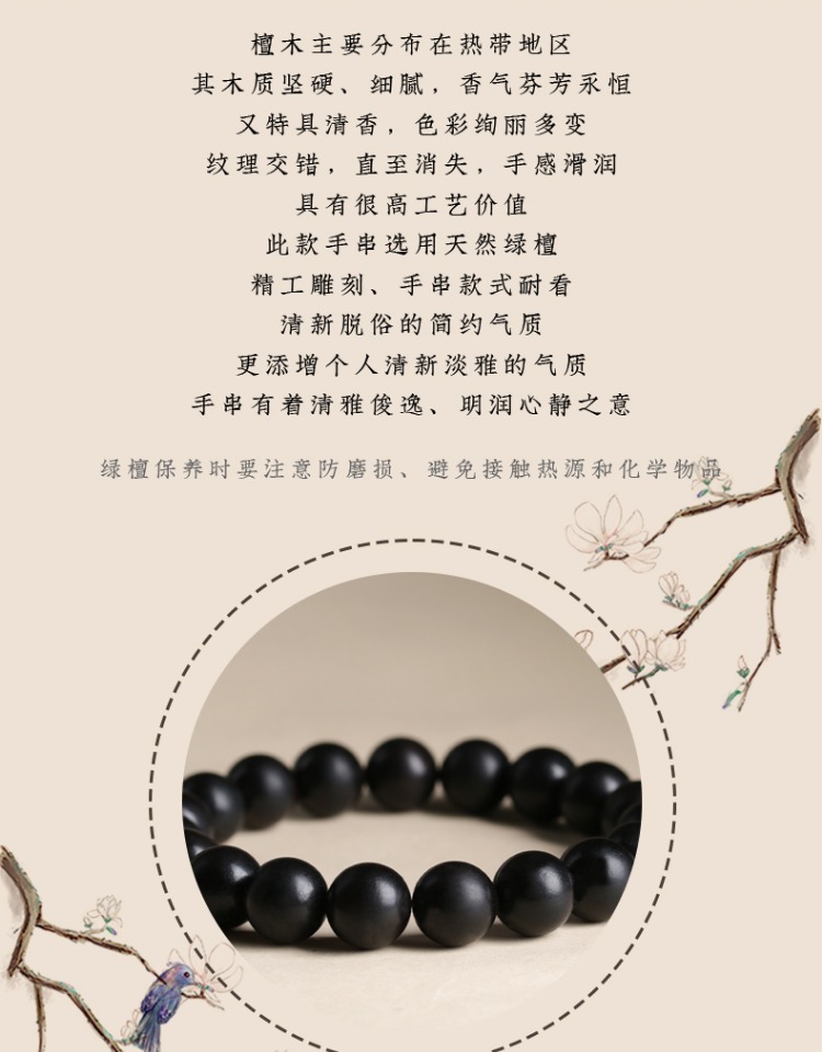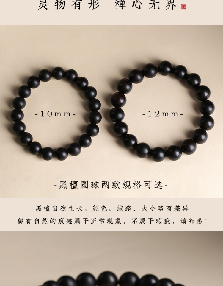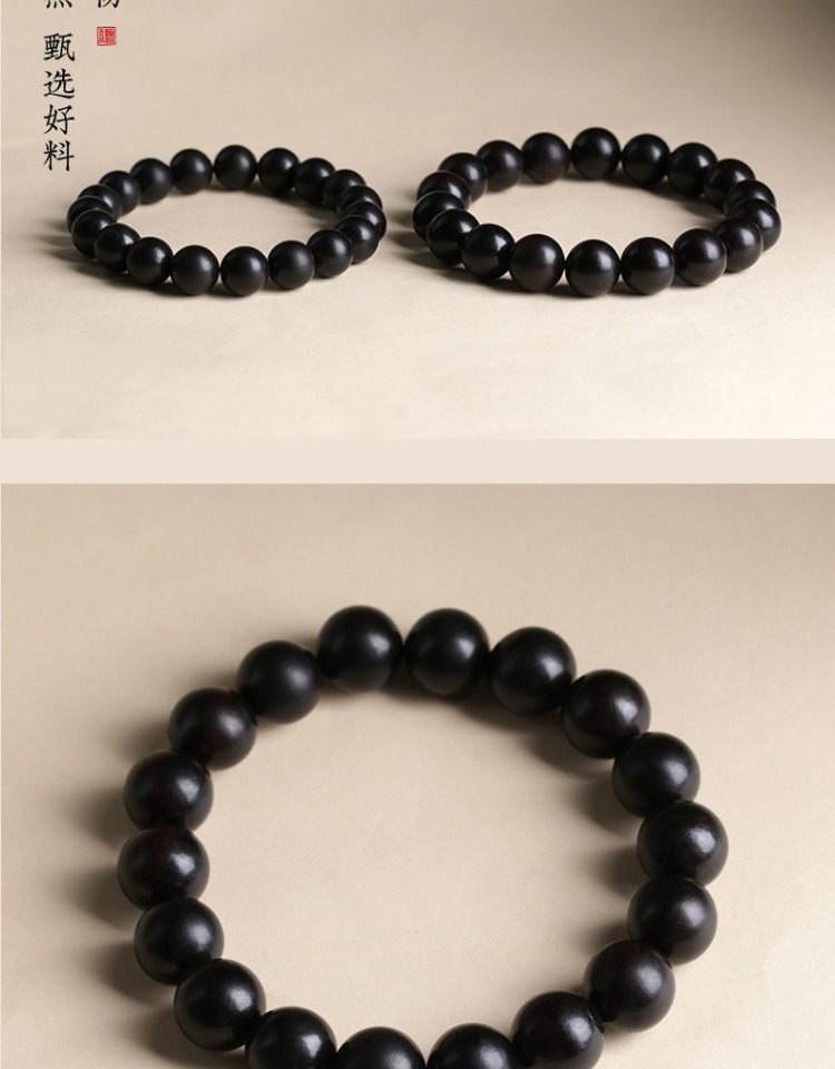天然黑檀木手串男女情侣单圈木质佛珠手链盘玩把件复古民族风文玩