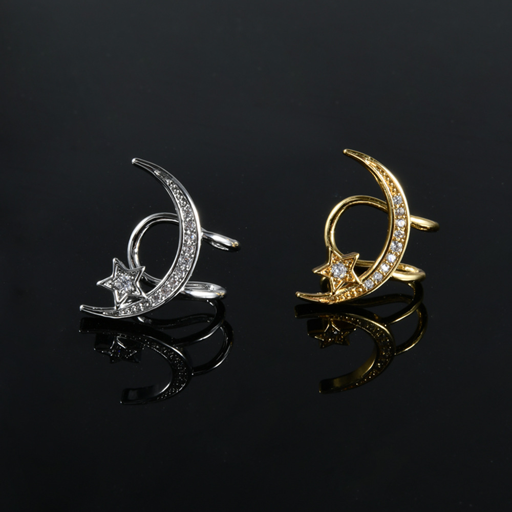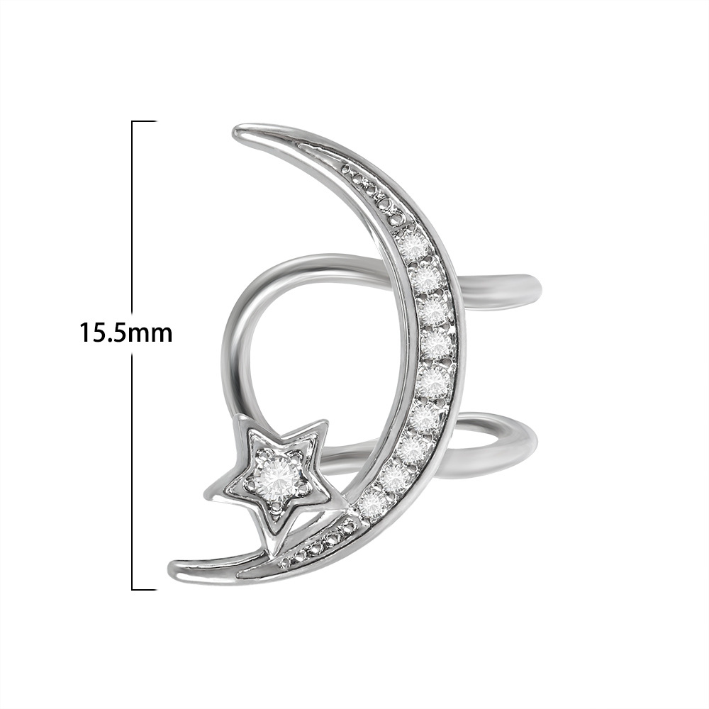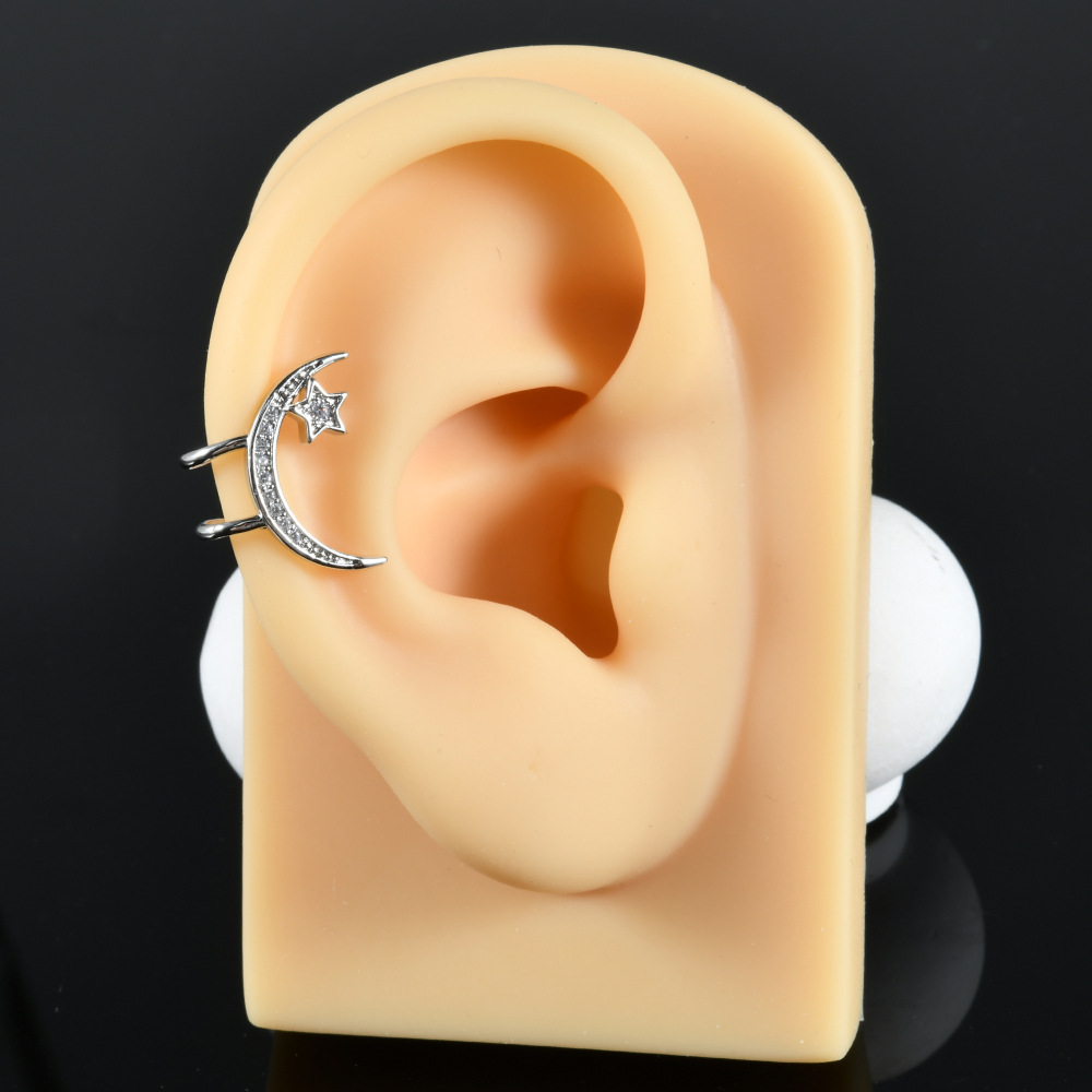 跨境镶白色圆形钻石耳骨夹不锈钢个性五星月亮小耳夹可爱穿刺耳饰