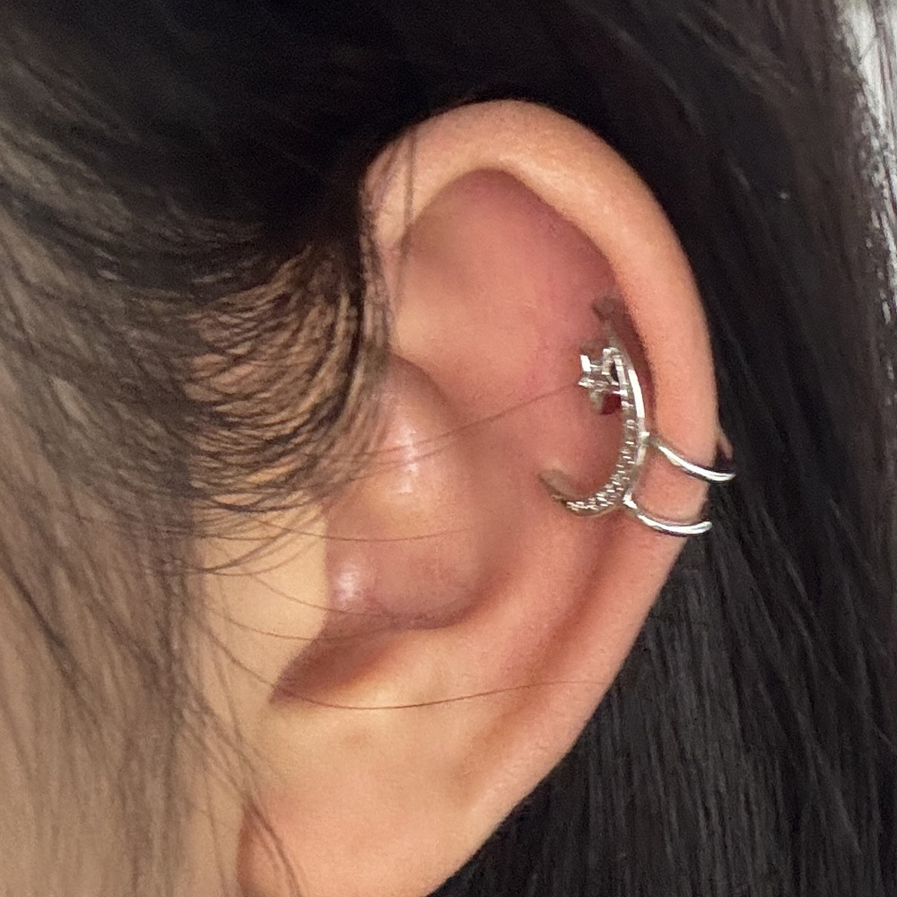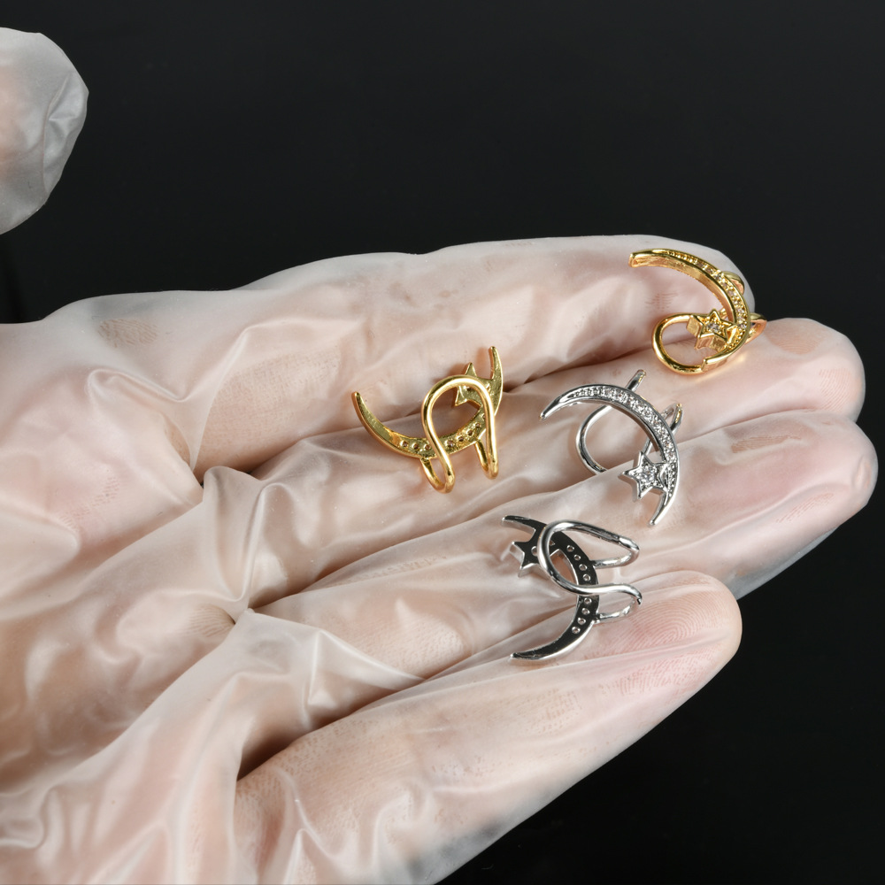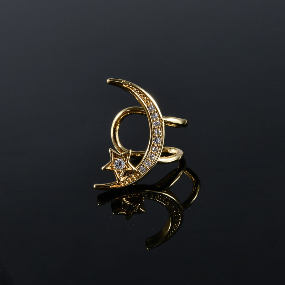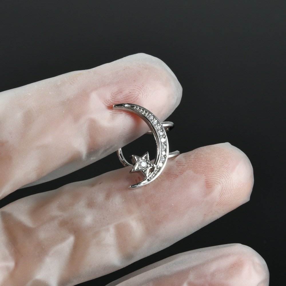 跨境镶白色圆形钻石耳骨夹不锈钢个性五星月亮小耳夹可爱穿刺耳饰