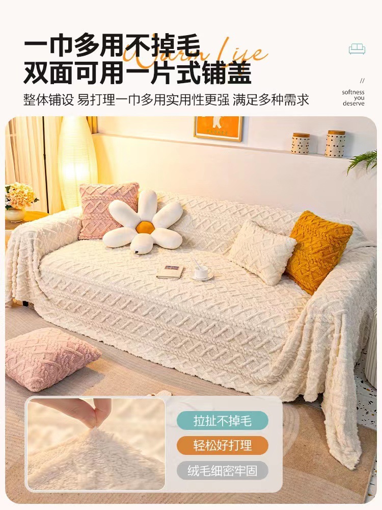 冬季毛绒沙发套罩全包万能简约现代沙发垫防猫抓沙发盖布加厚盖巾