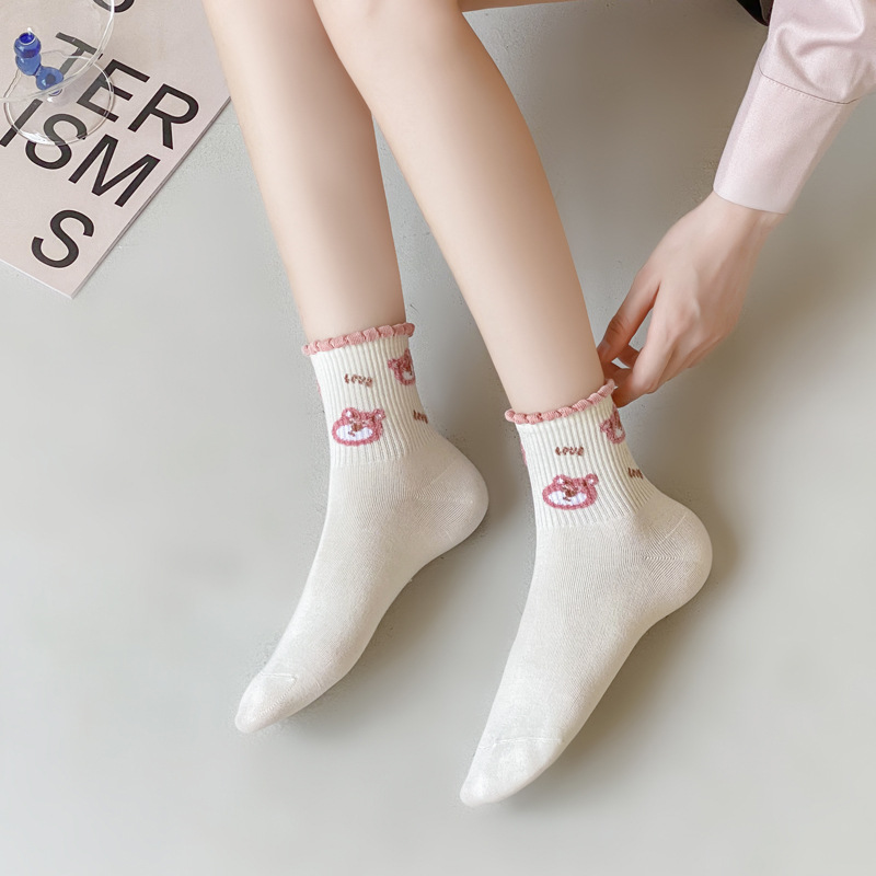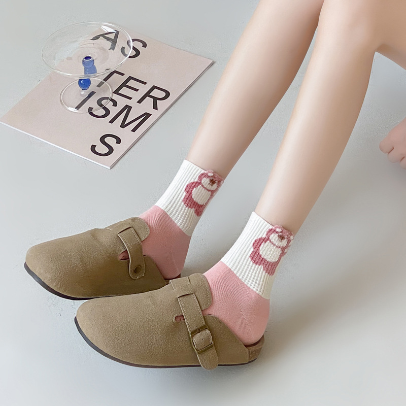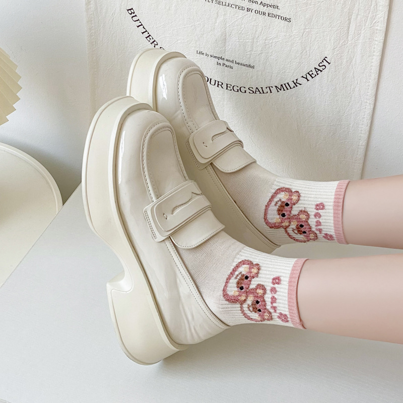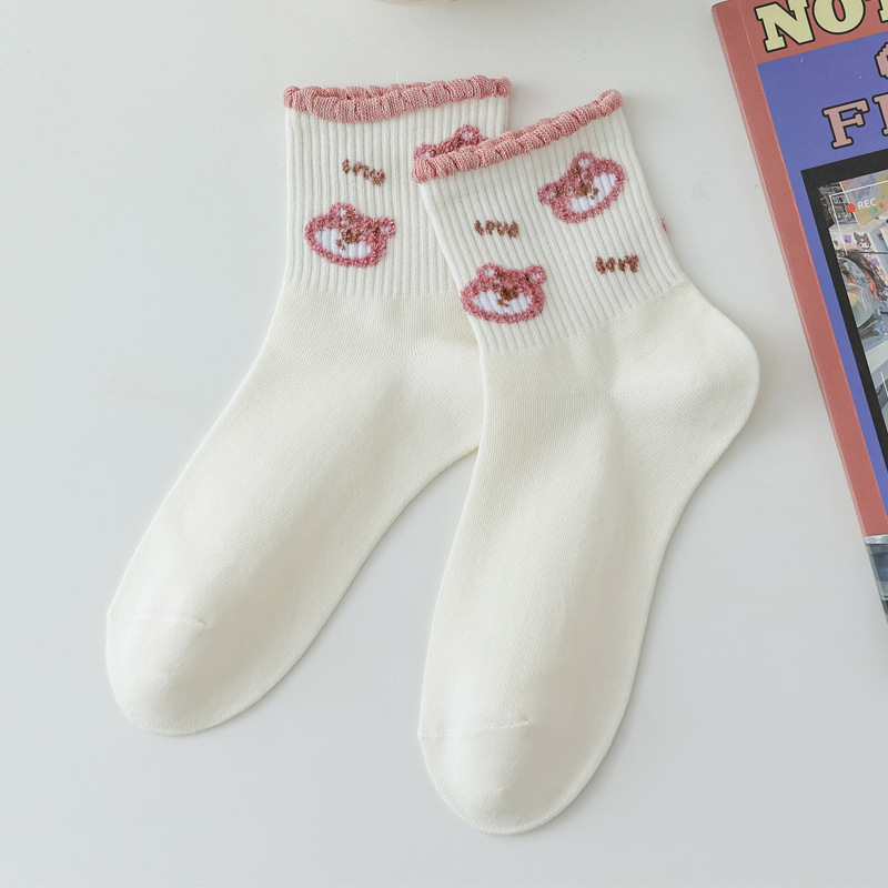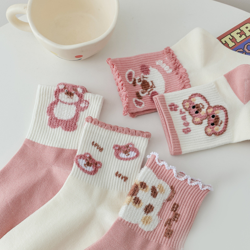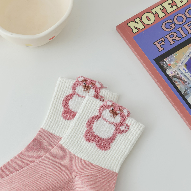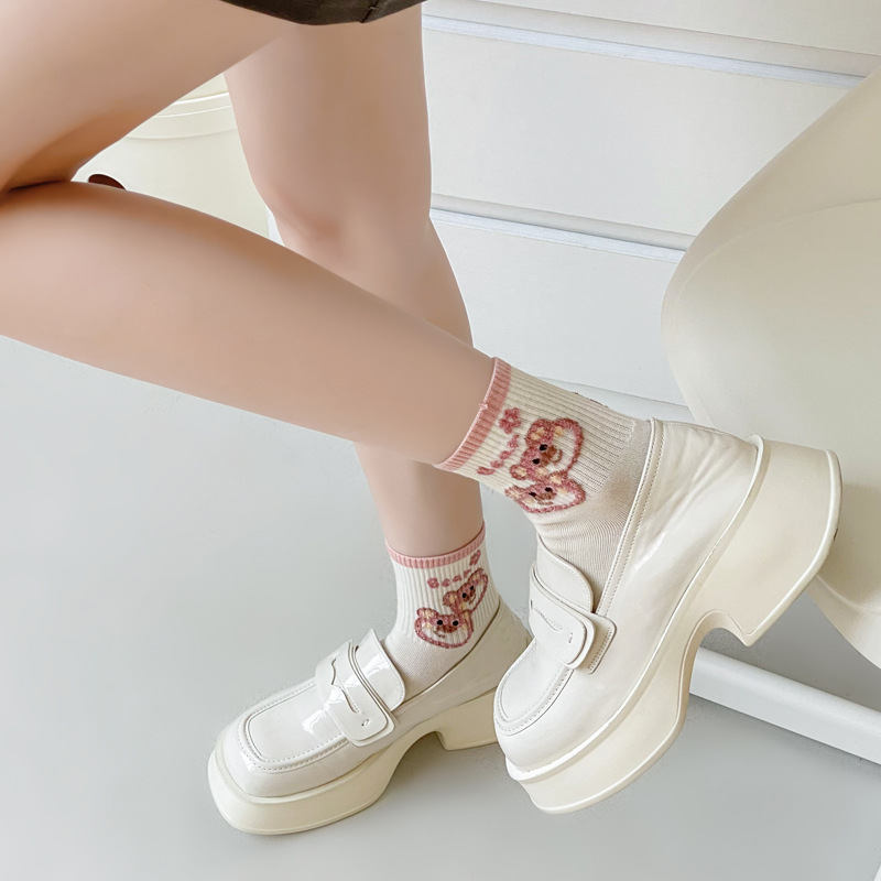批发羽毛纱袜子女春秋日系秋冬款甜美可爱粉红熊卡通中筒袜
