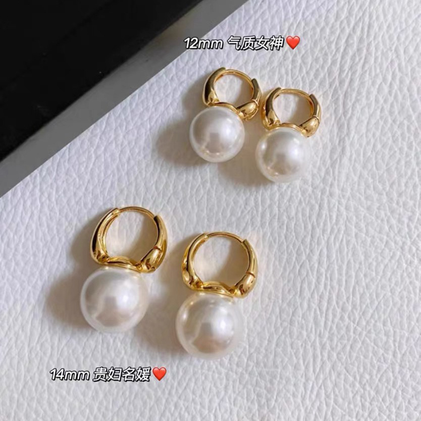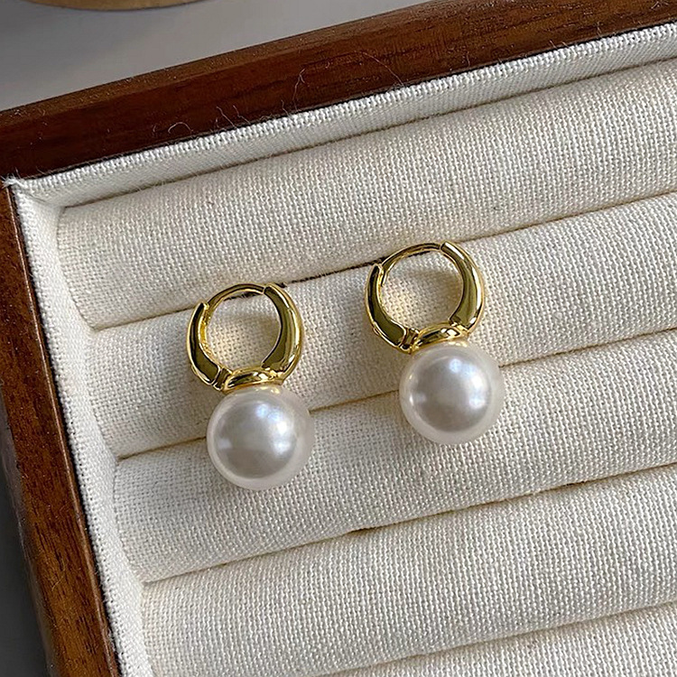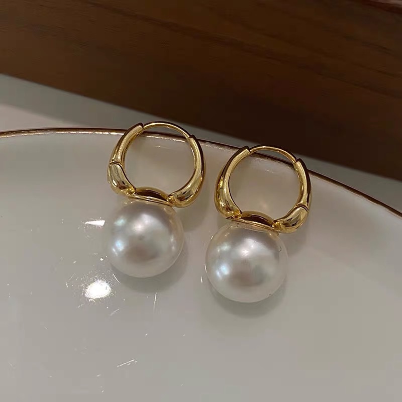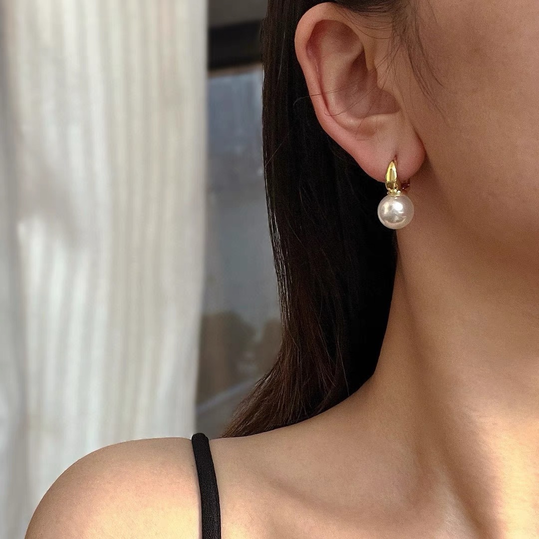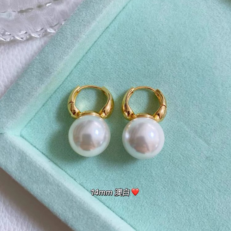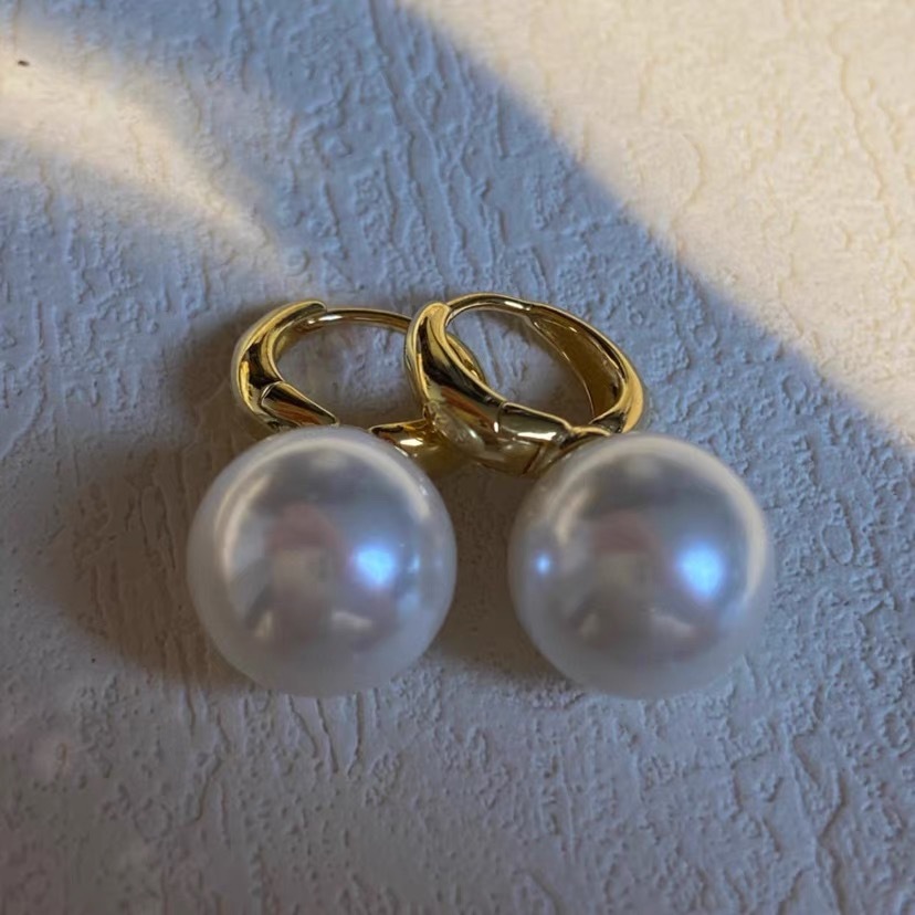 925银针仿澳白珍珠水桶耳环女气质名媛法式复古金色耳扣潮