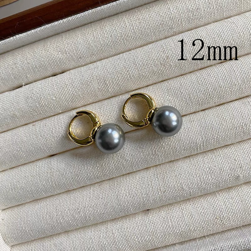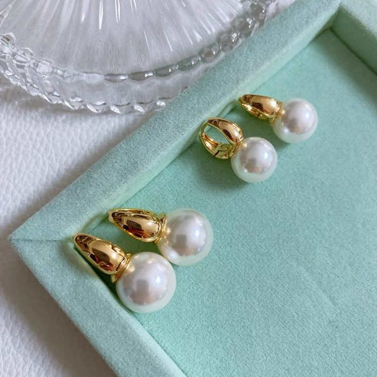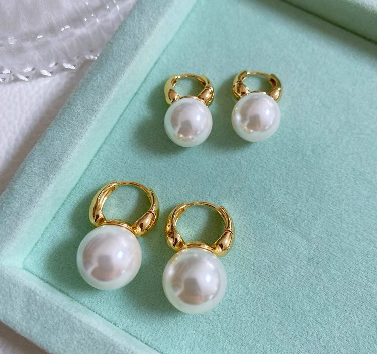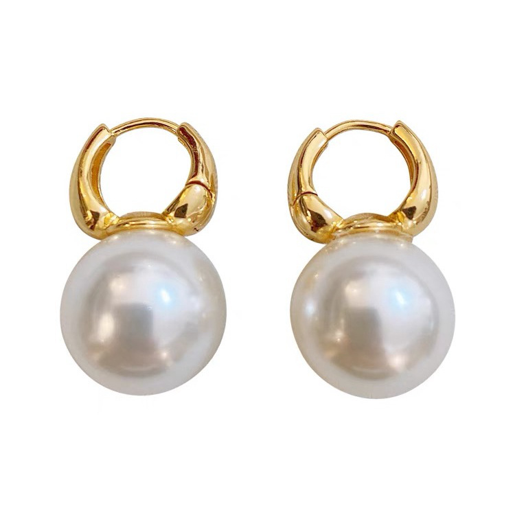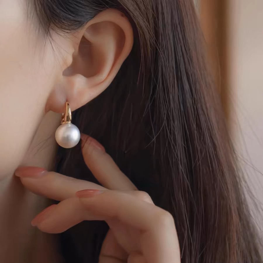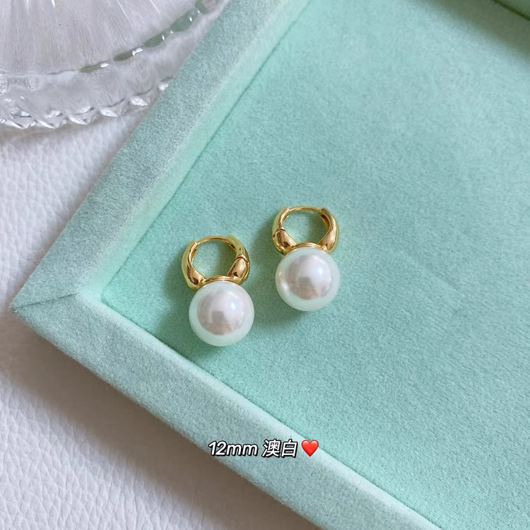 925银针仿澳白珍珠水桶耳环女气质名媛法式复古金色耳扣潮
