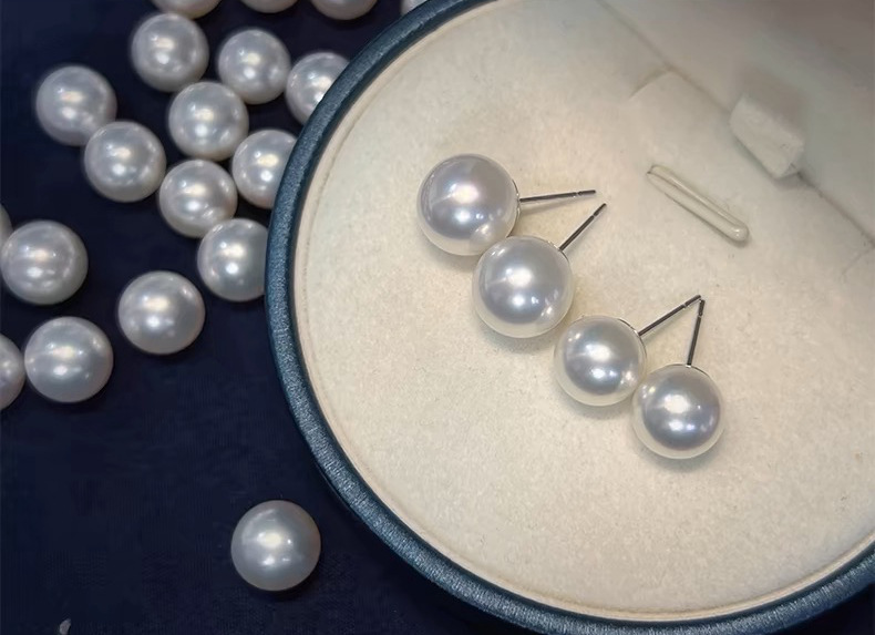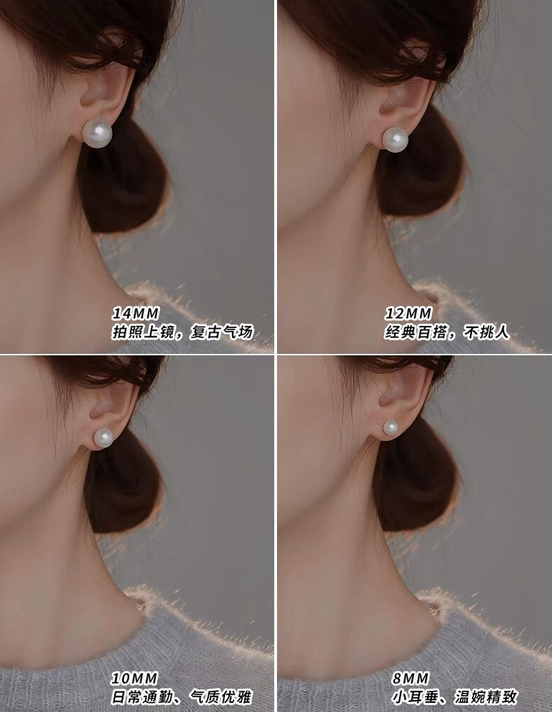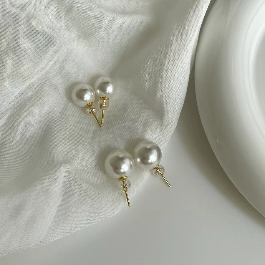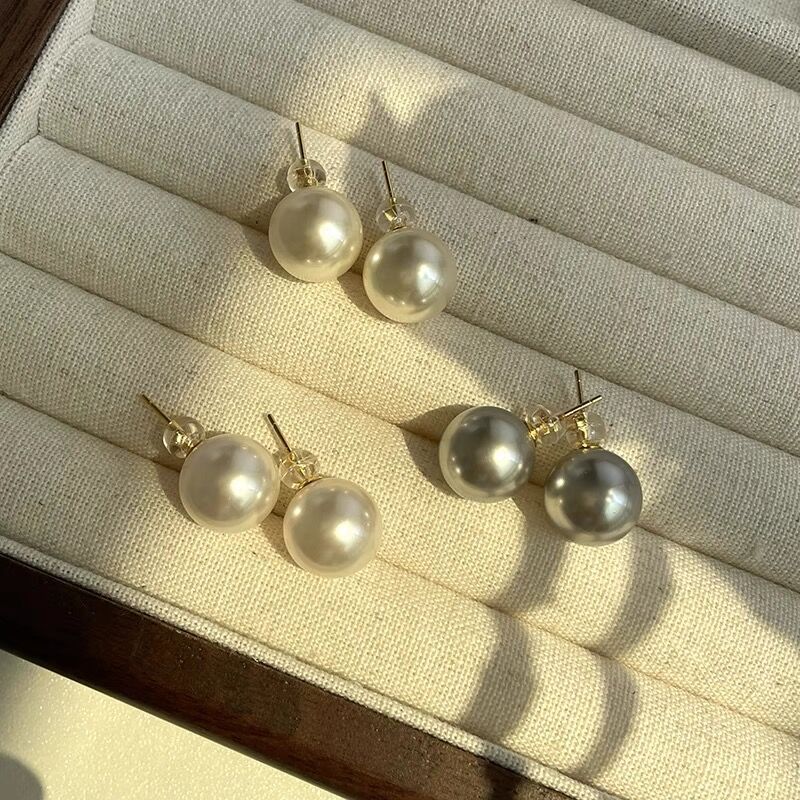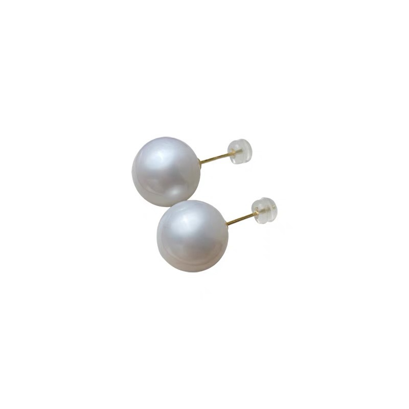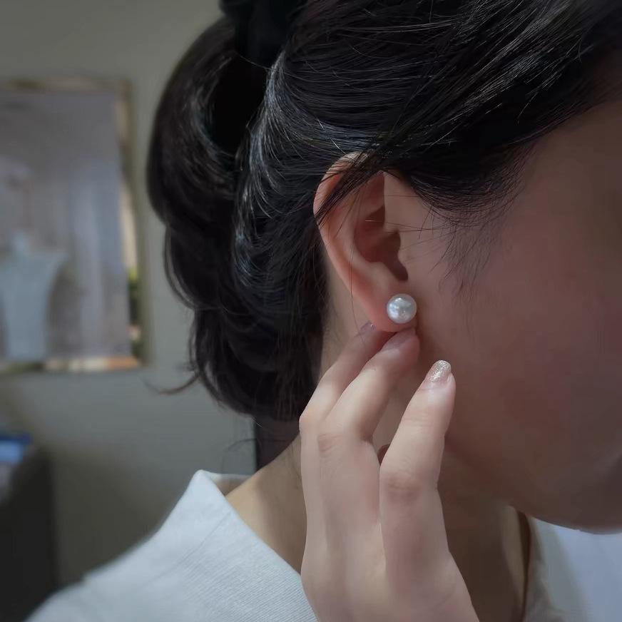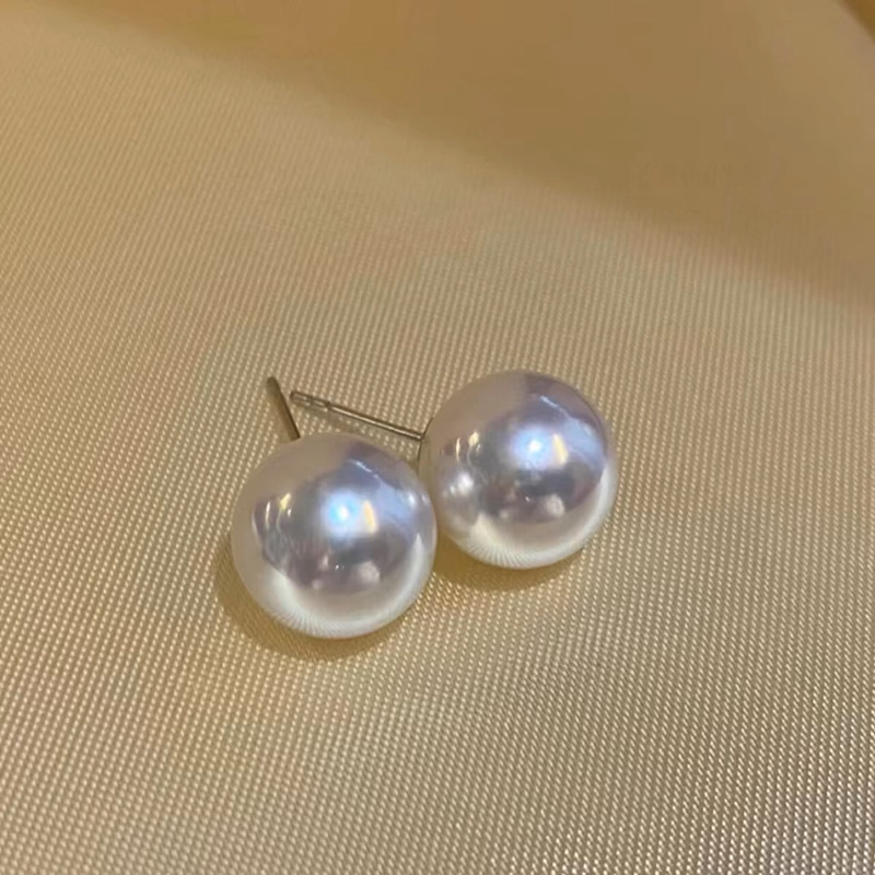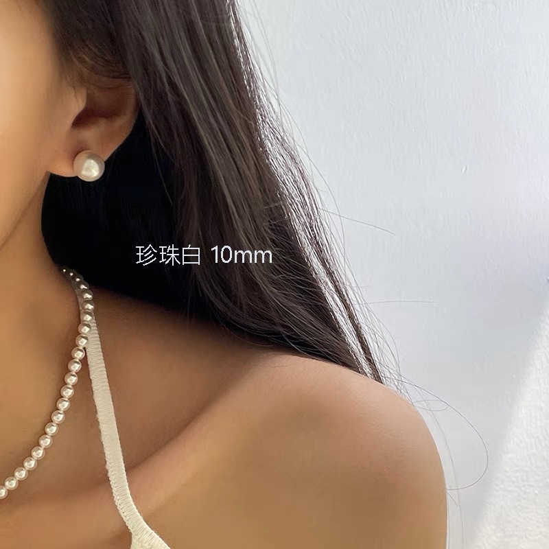 贝珠925银针强光珍珠耳钉素珠轻奢复古优雅耳环仿施家珍珠耳环