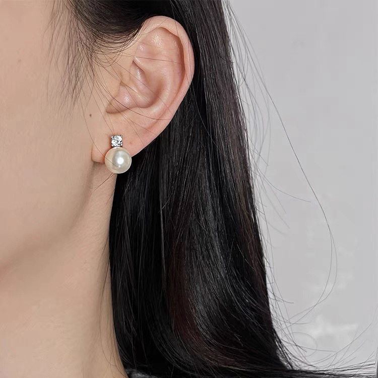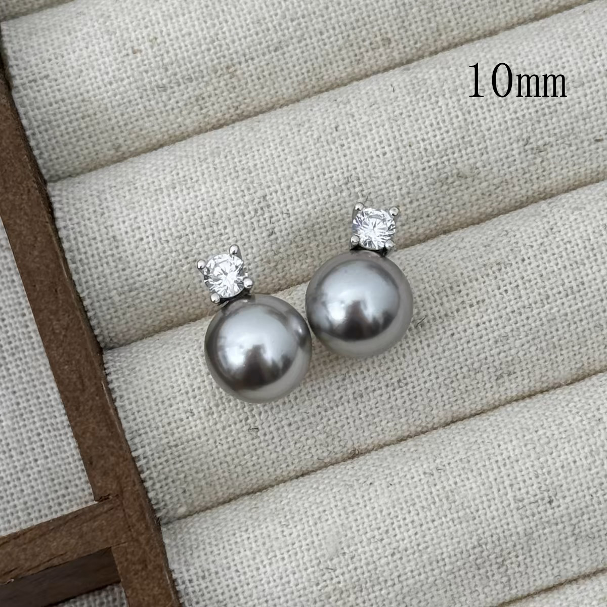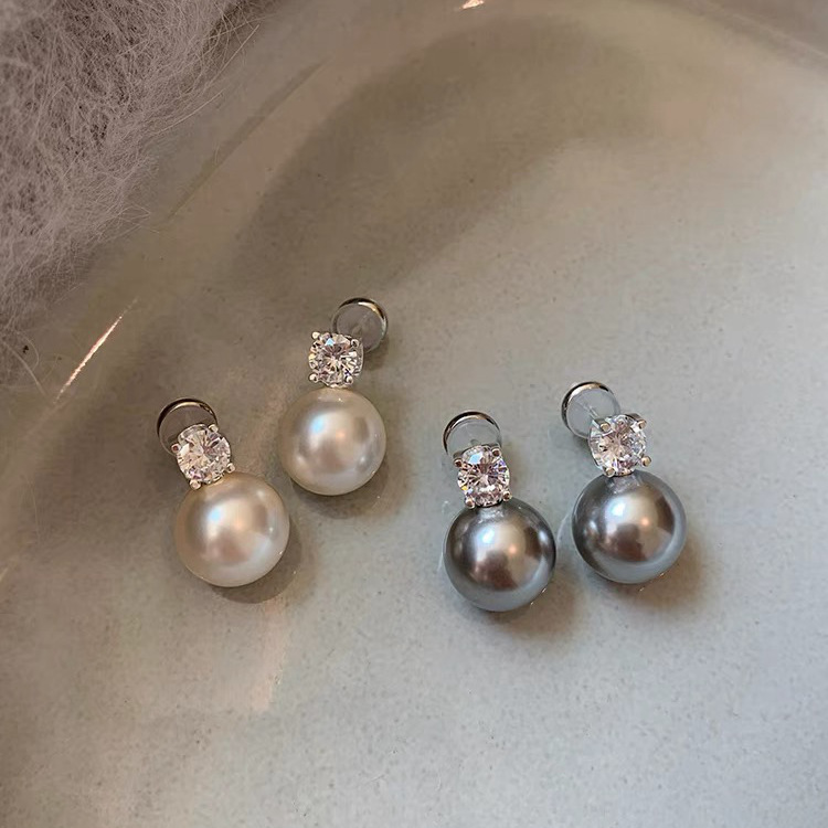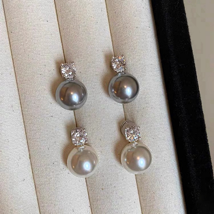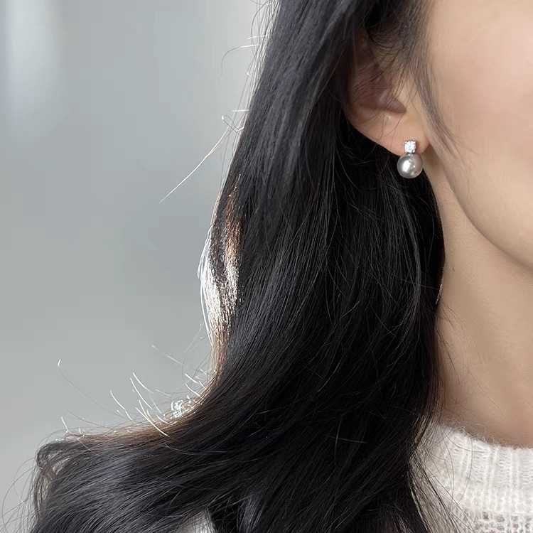 施家澳白真多麻灰色镶钻珍珠耳钉女轻奢小众高端气质耳饰耳环厂家