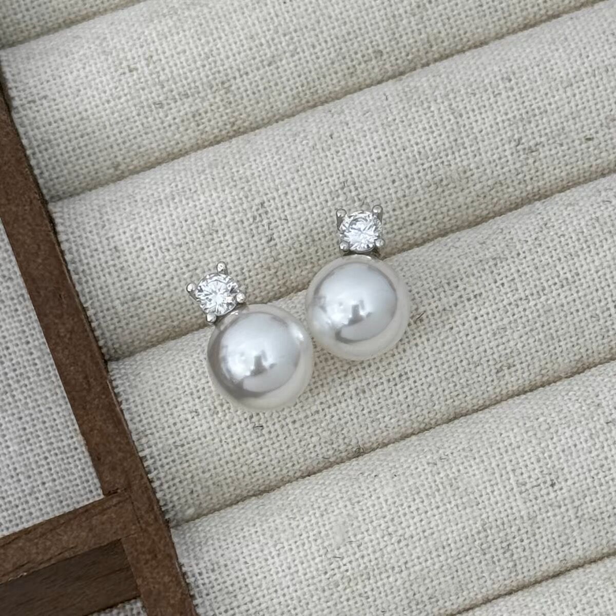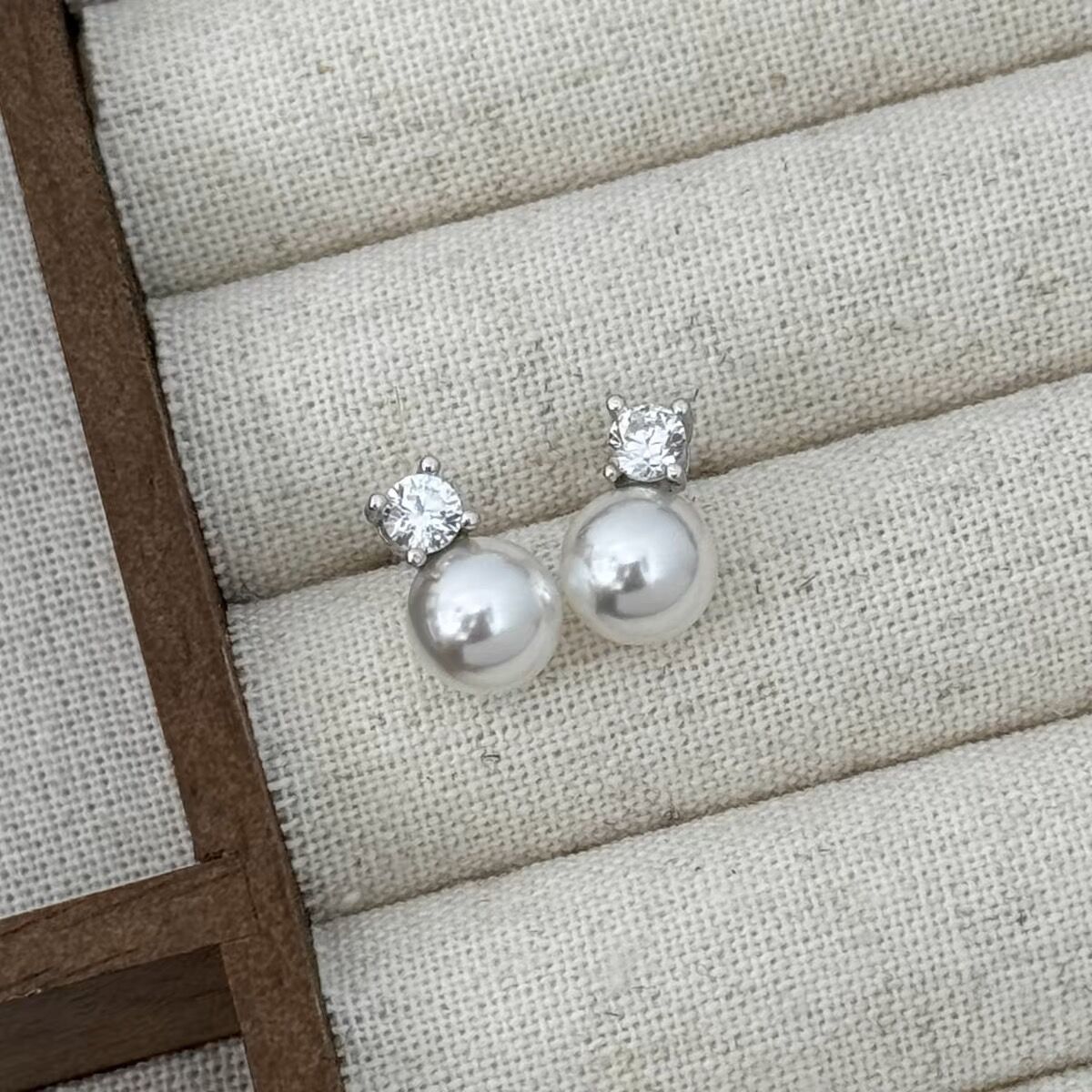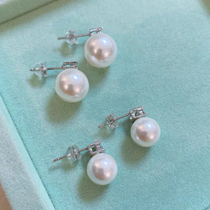 施家澳白真多麻灰色镶钻珍珠耳钉女轻奢小众高端气质耳饰耳环厂家