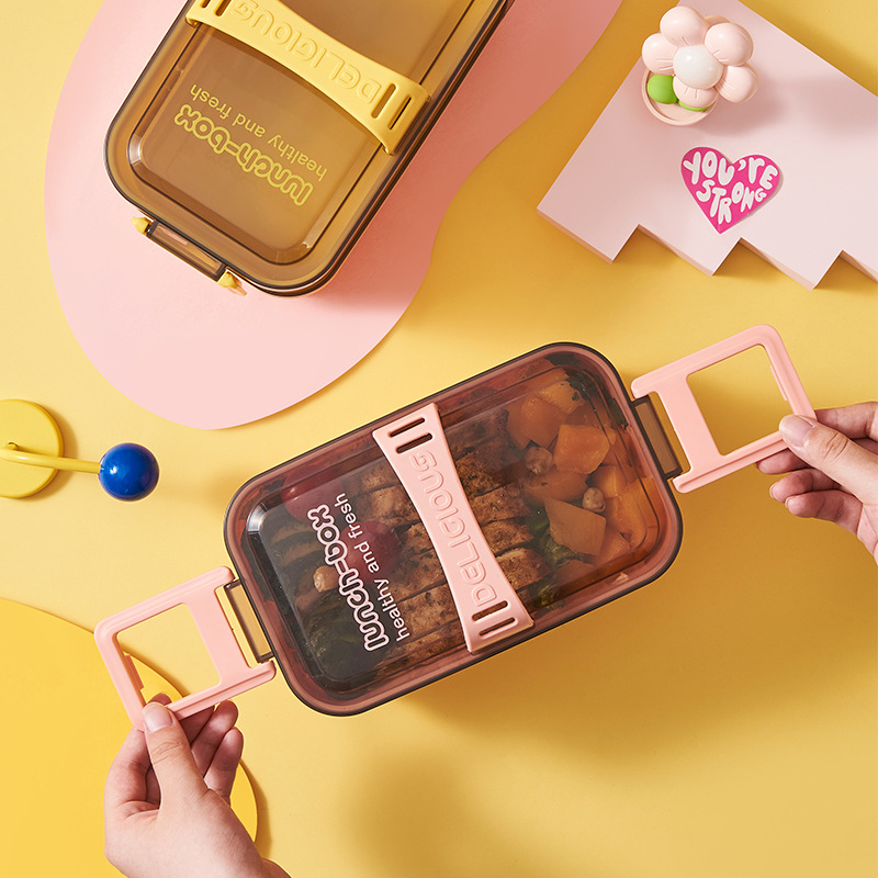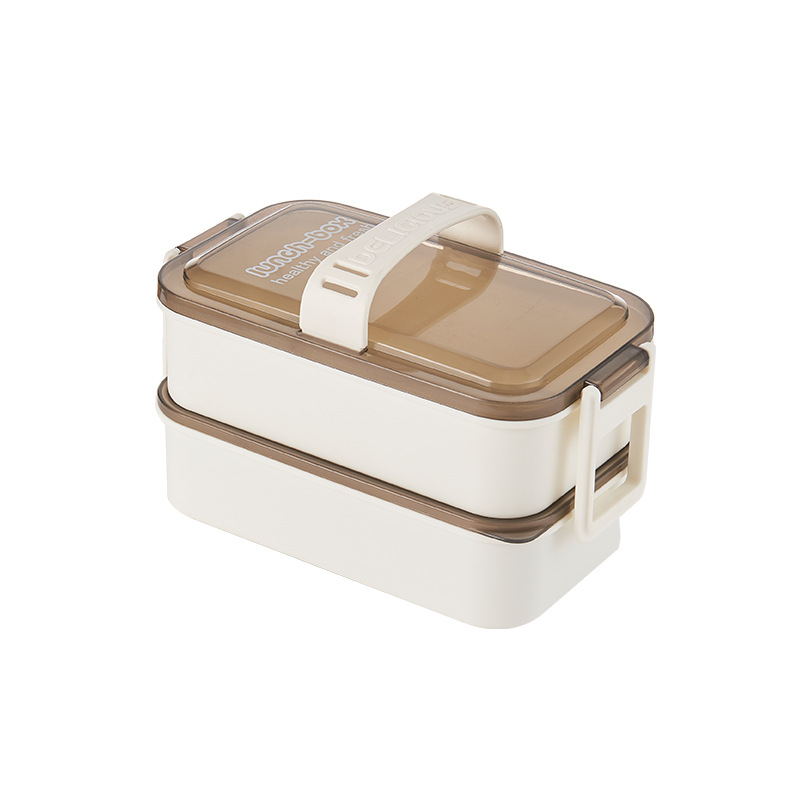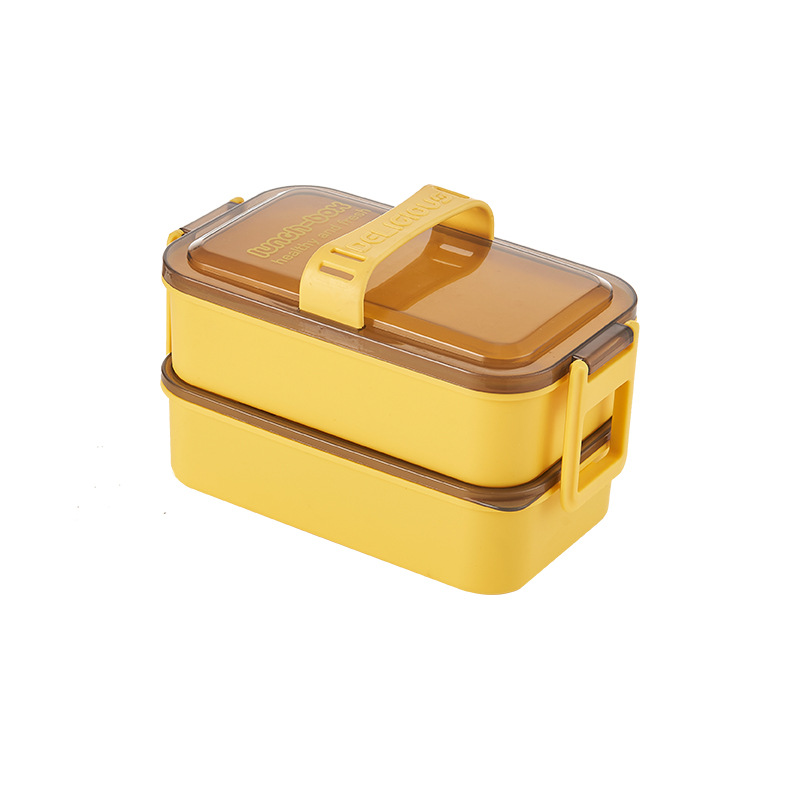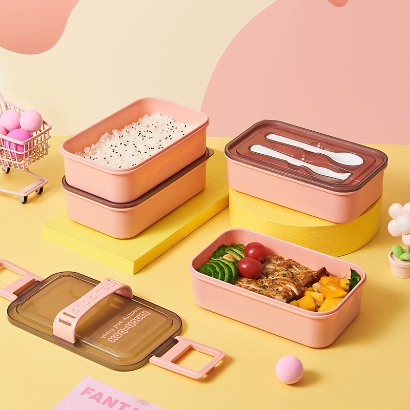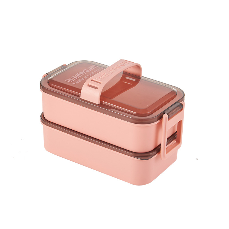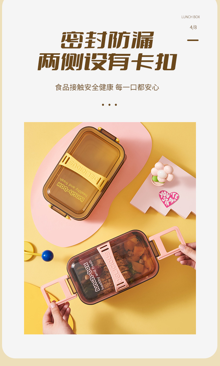 含餐具简约便携饭盒 双层分格塑料密封便当盒 食品级上班学生餐盒
