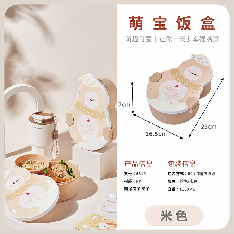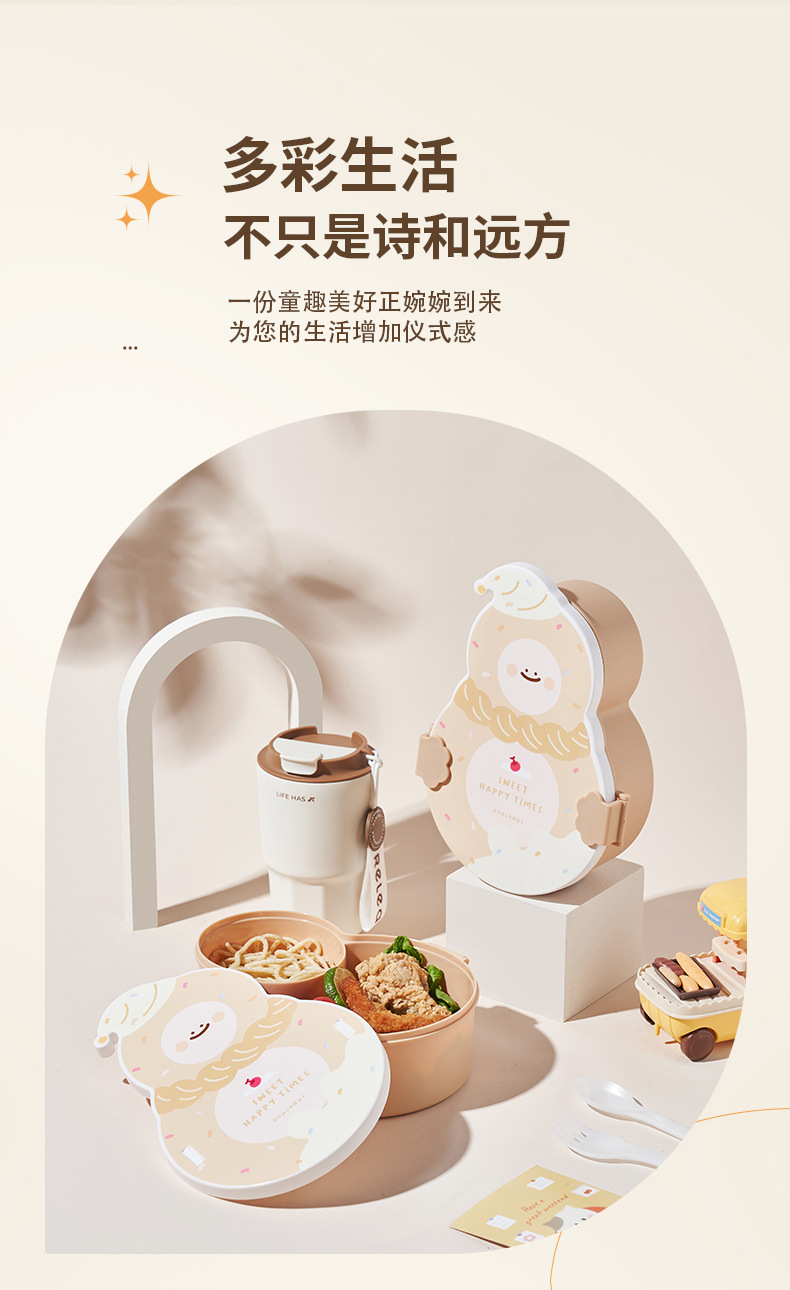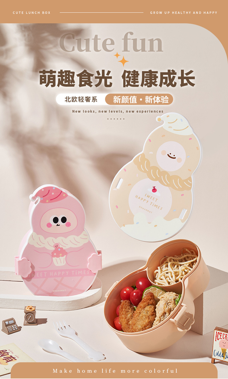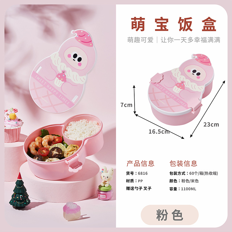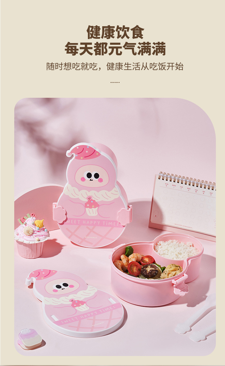 便携儿童卡通饭盒学生便当盒外出户外野餐水果分格餐盒密封便当盒