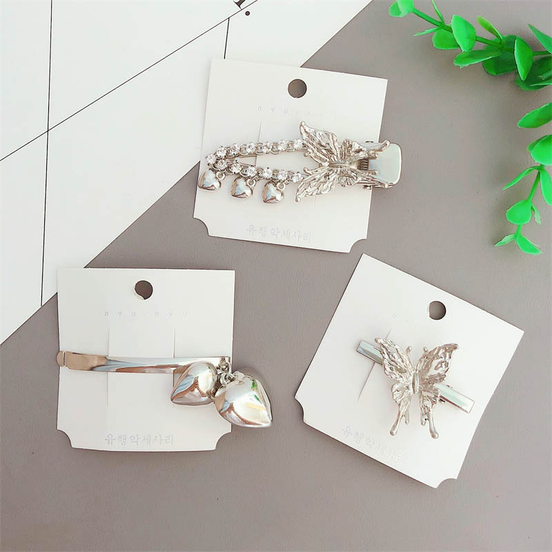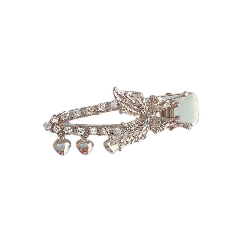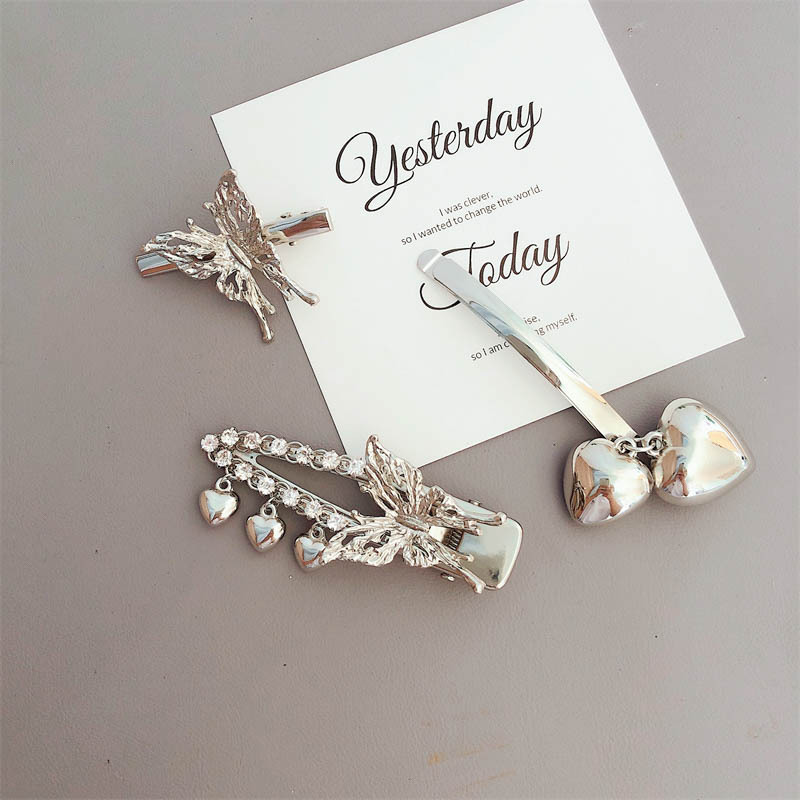 新款合金蝴蝶装饰鸭嘴夹超仙森系边夹子心形银色闪光发夹发饰批发