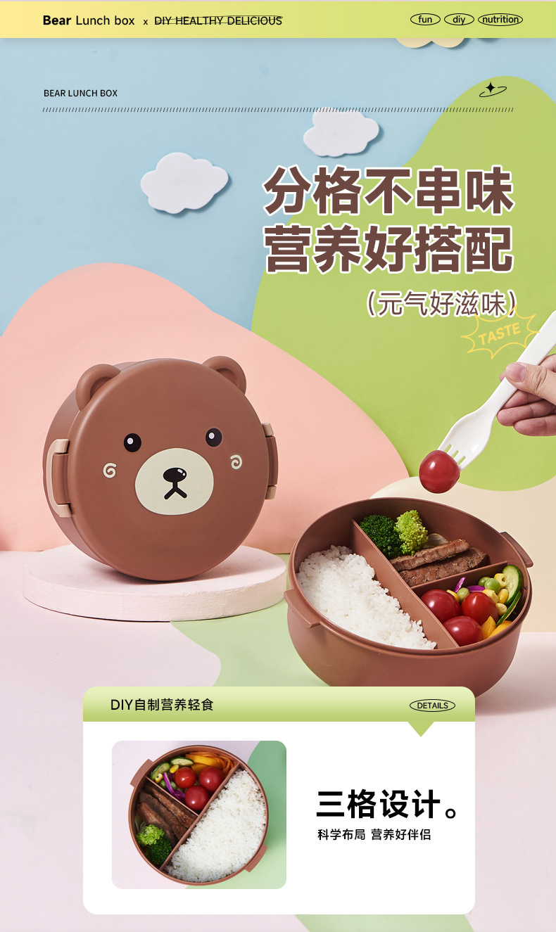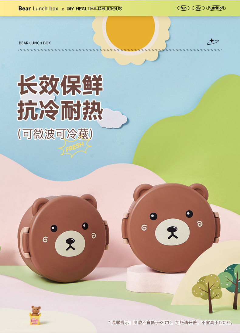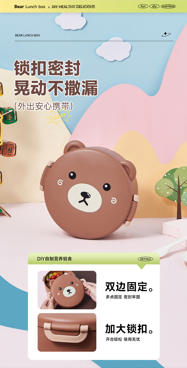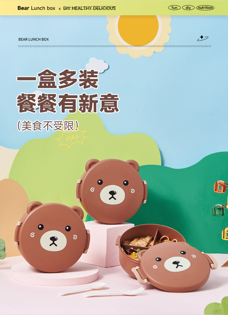 儿童卡通饭盒便携多格学生午餐盒幼儿园密封创意野餐微波炉便当盒