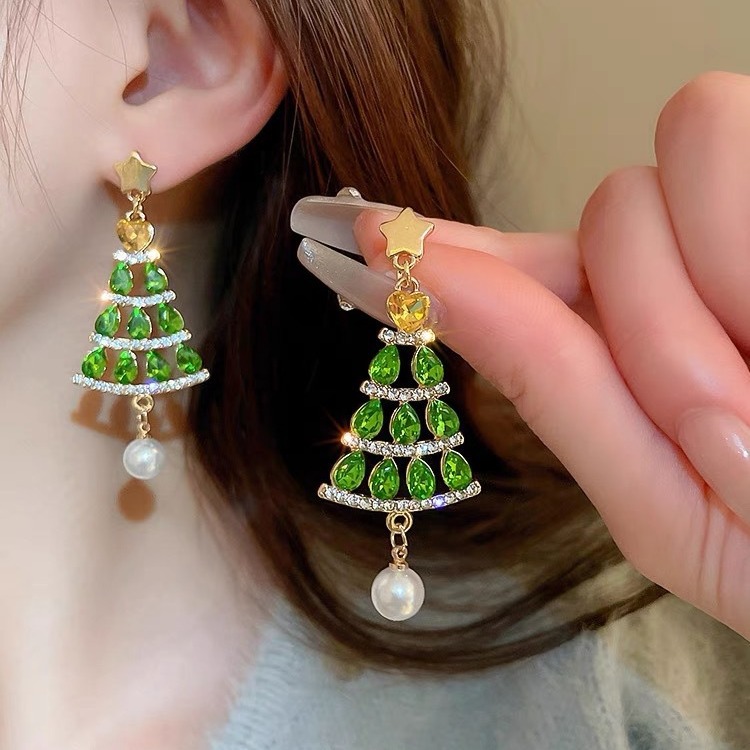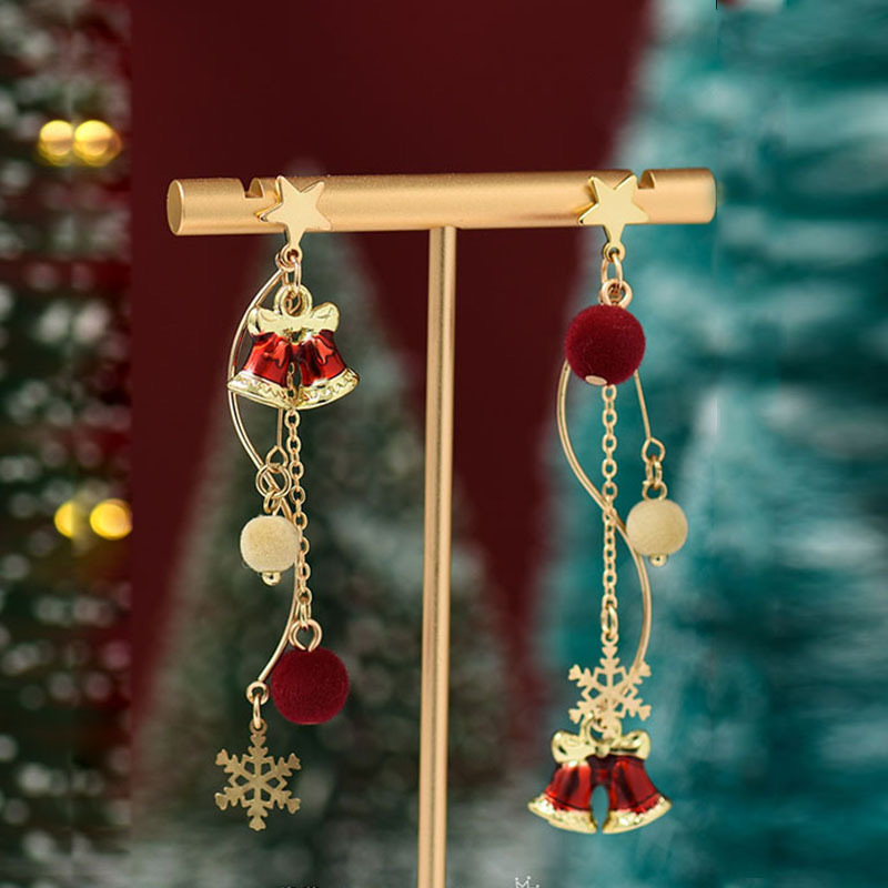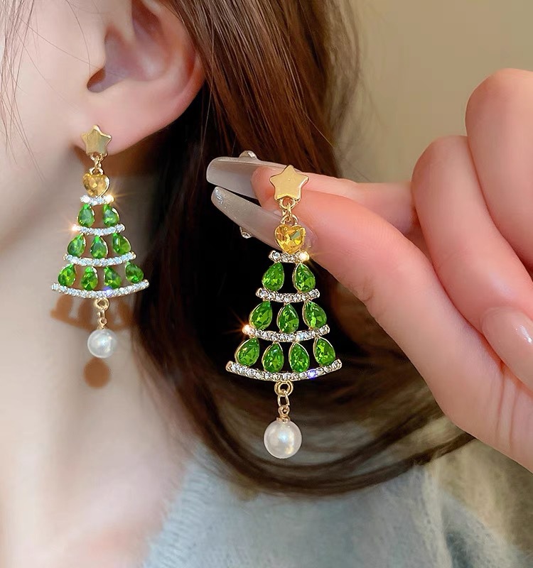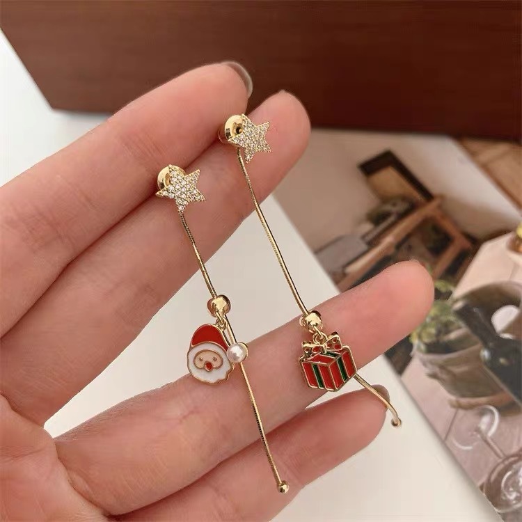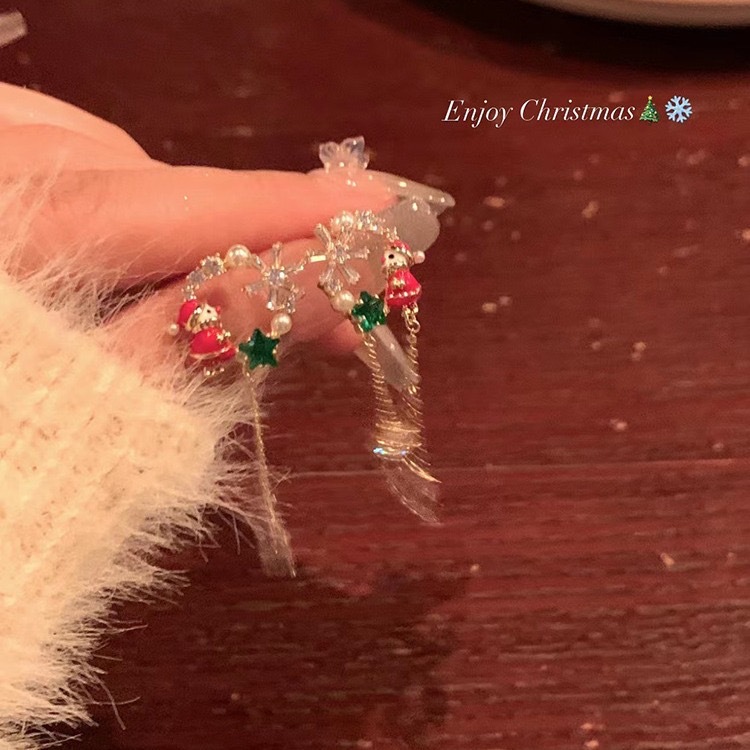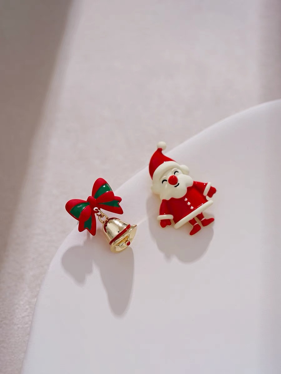 欧美跨境热销圣诞系列不对称圣诞老人耳环小众设计彩色圣诞树耳钉