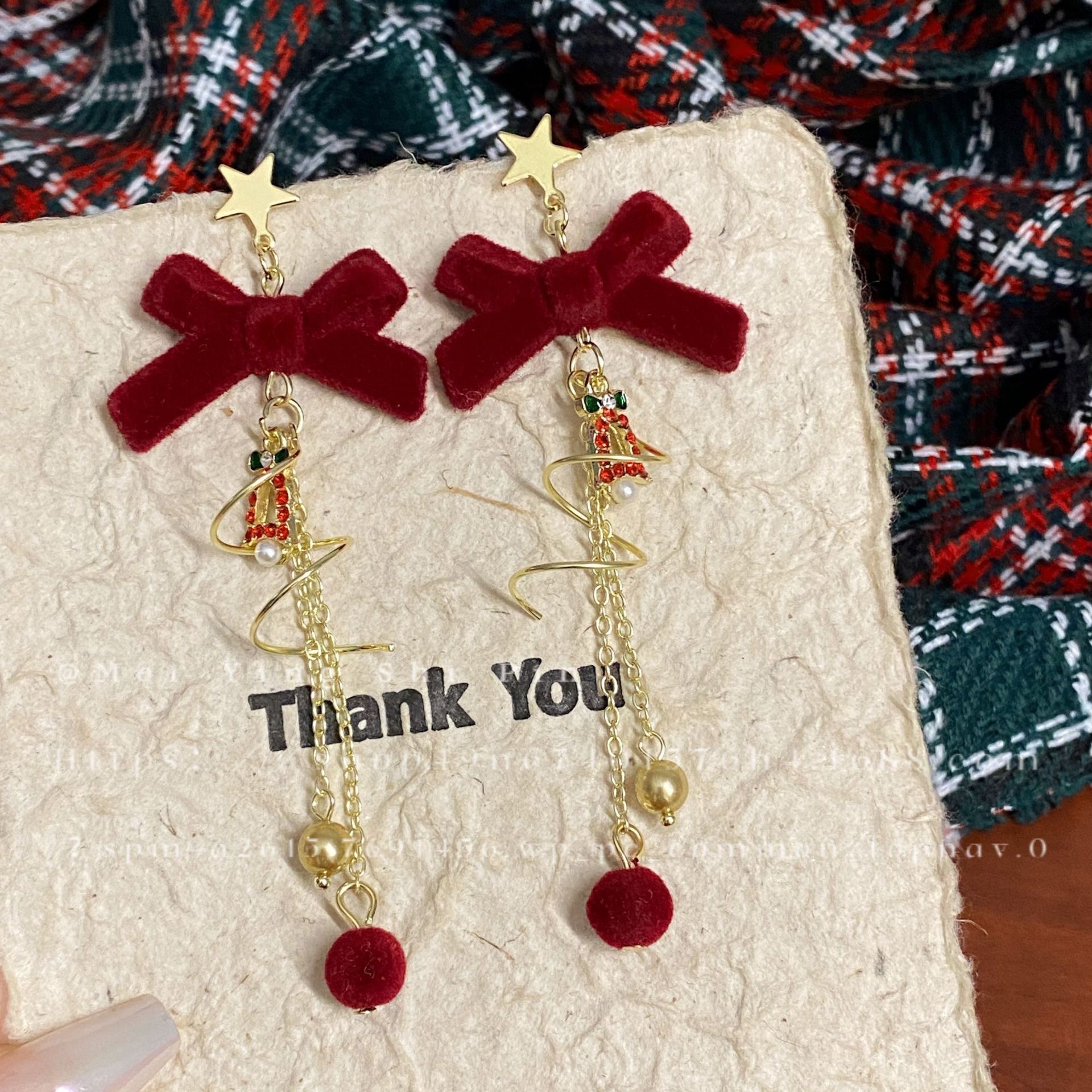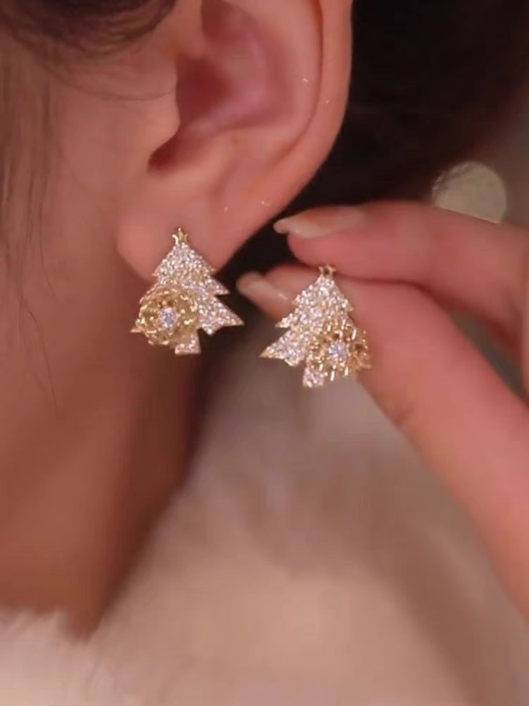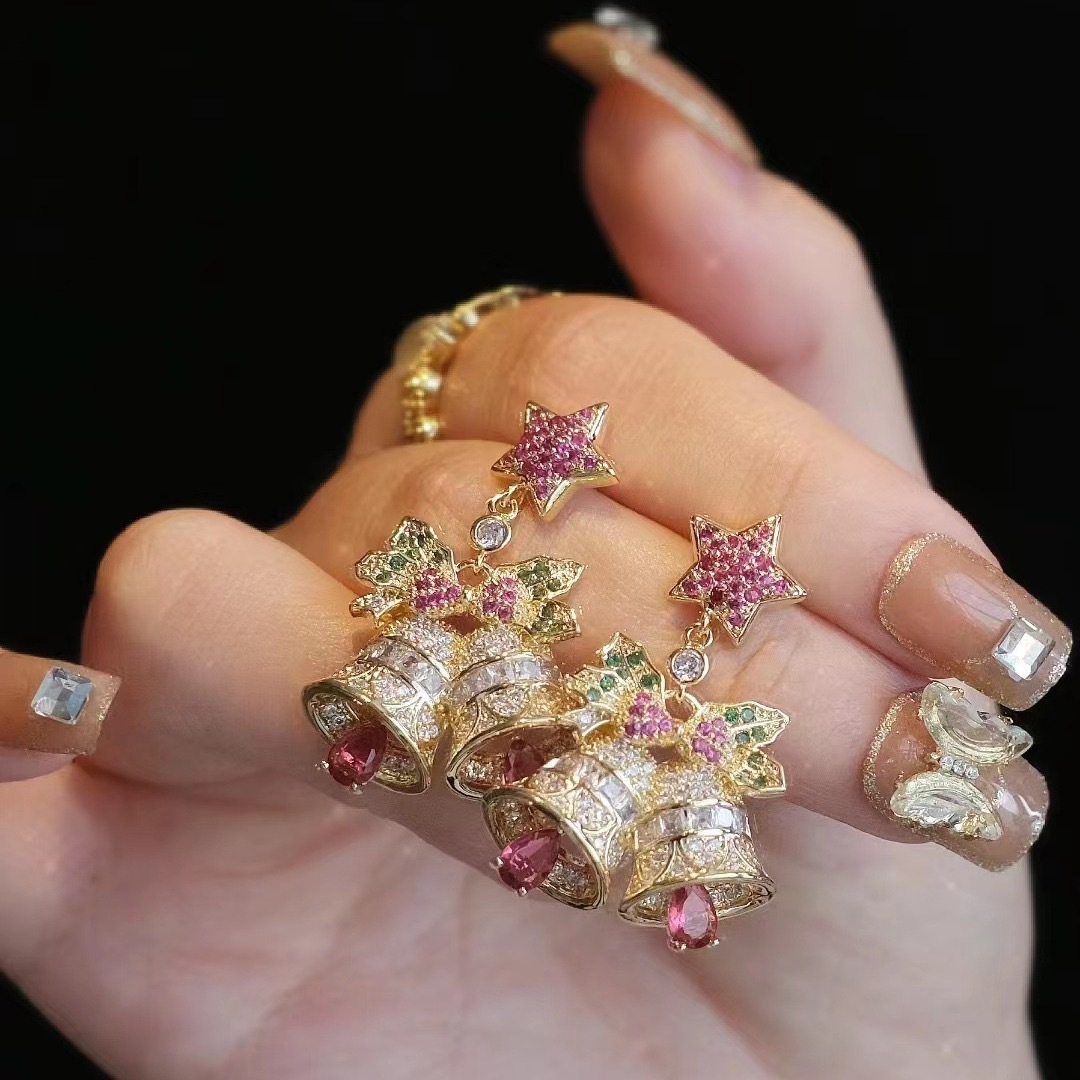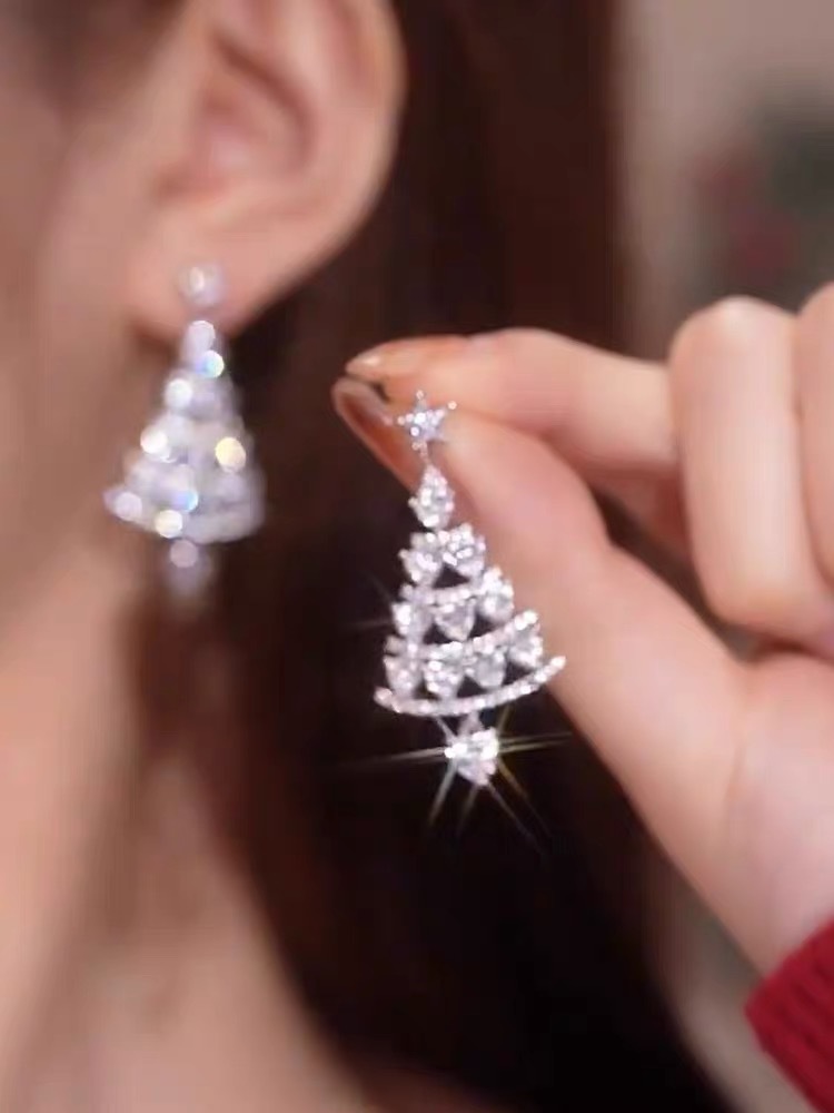 欧美跨境热销圣诞系列不对称圣诞老人耳环小众设计彩色圣诞树耳钉