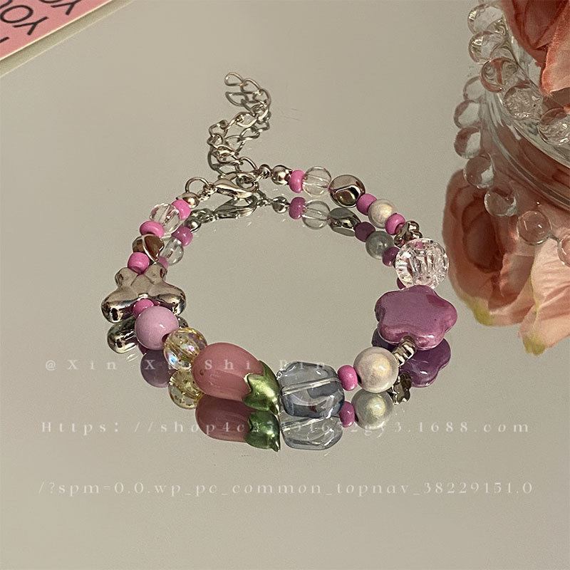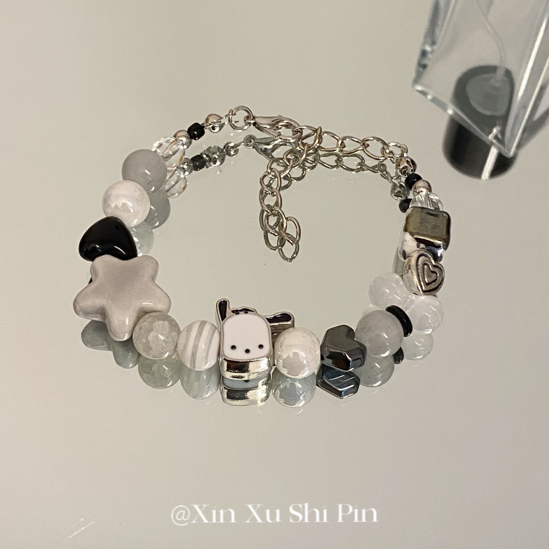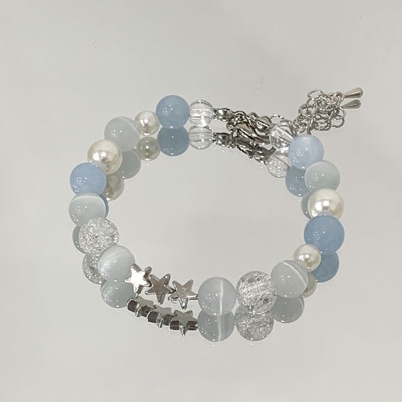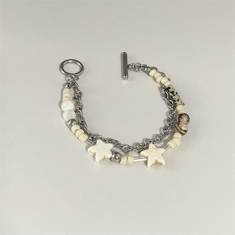 手工串珠双层星星手链女高级感锆石镶嵌轻奢时尚复古百搭珍珠手串