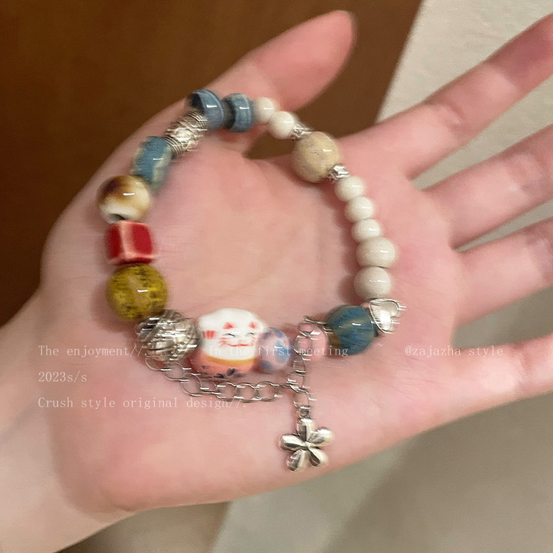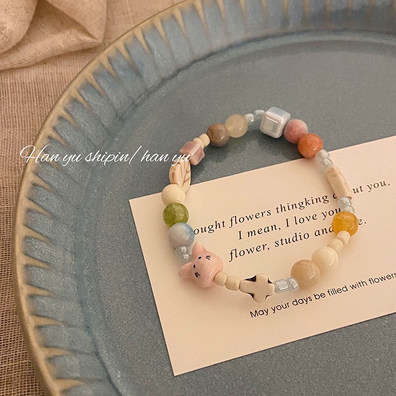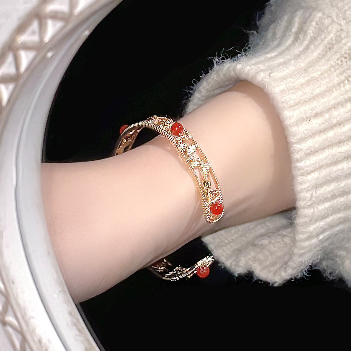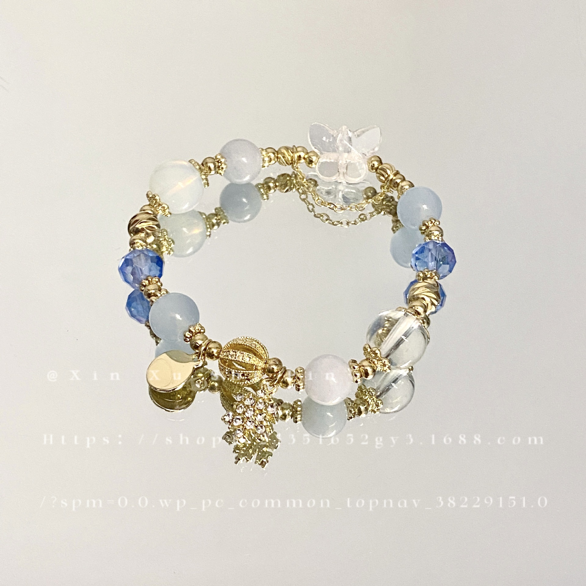 手工串珠双层星星手链女高级感锆石镶嵌轻奢时尚复古百搭珍珠手串