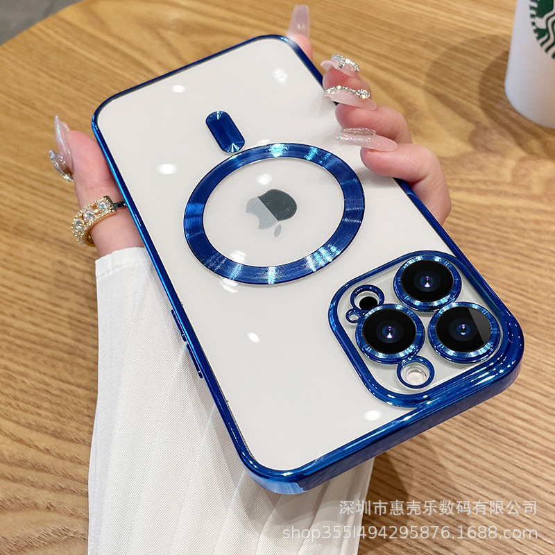 适用iPhone16promax手机壳高级感磁吸电镀苹果15防摔带护镜保护套