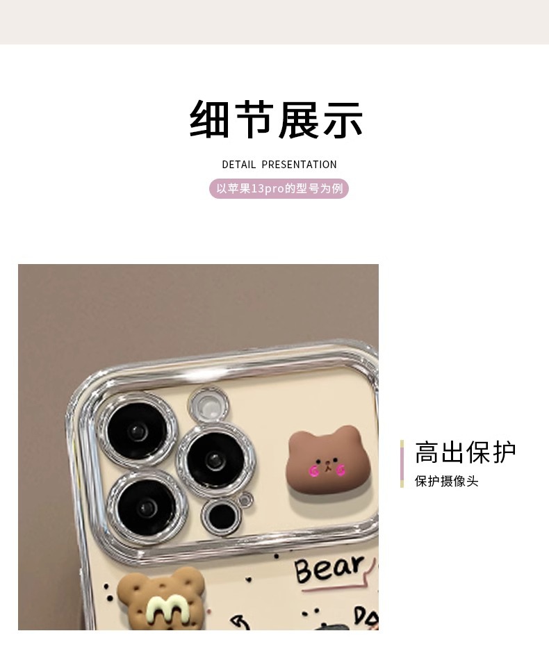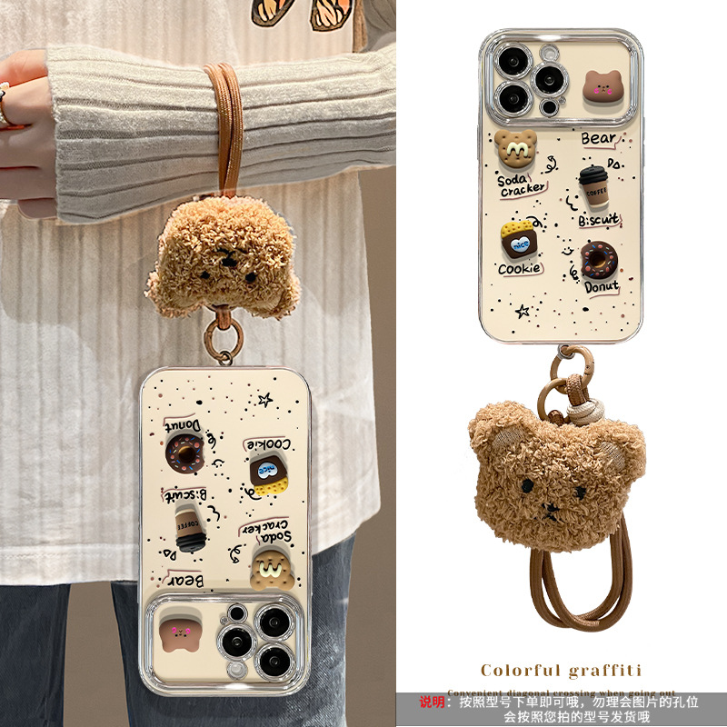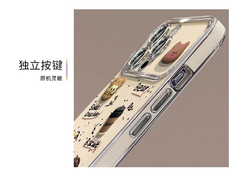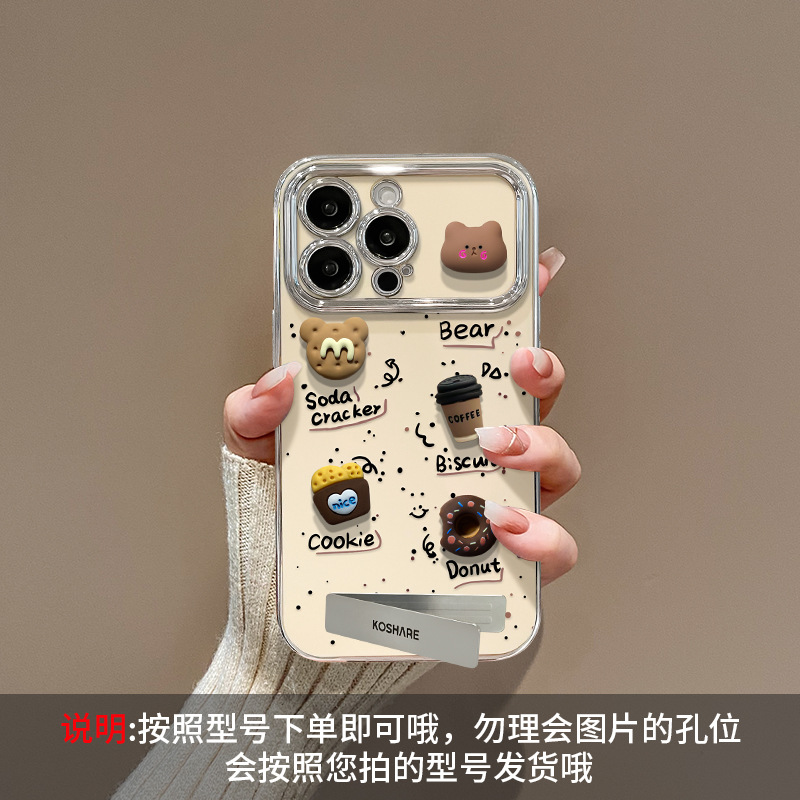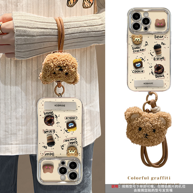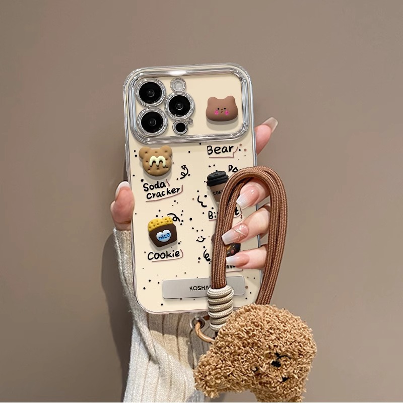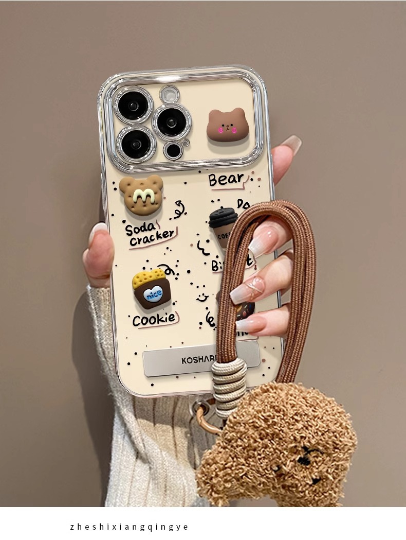 小熊饼干支架挂绳适用苹果15手机壳iphone16pro电镀6D视窗13硅胶X
