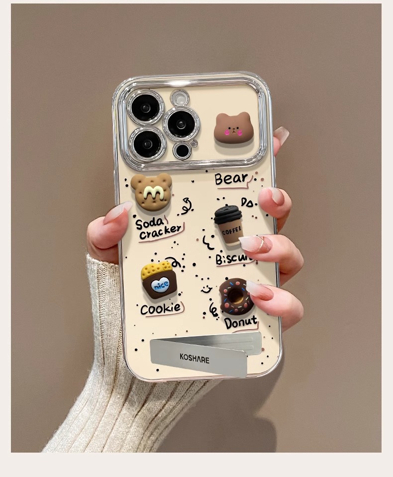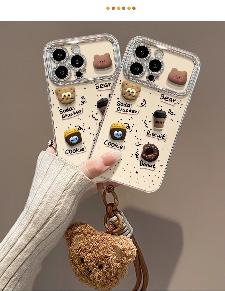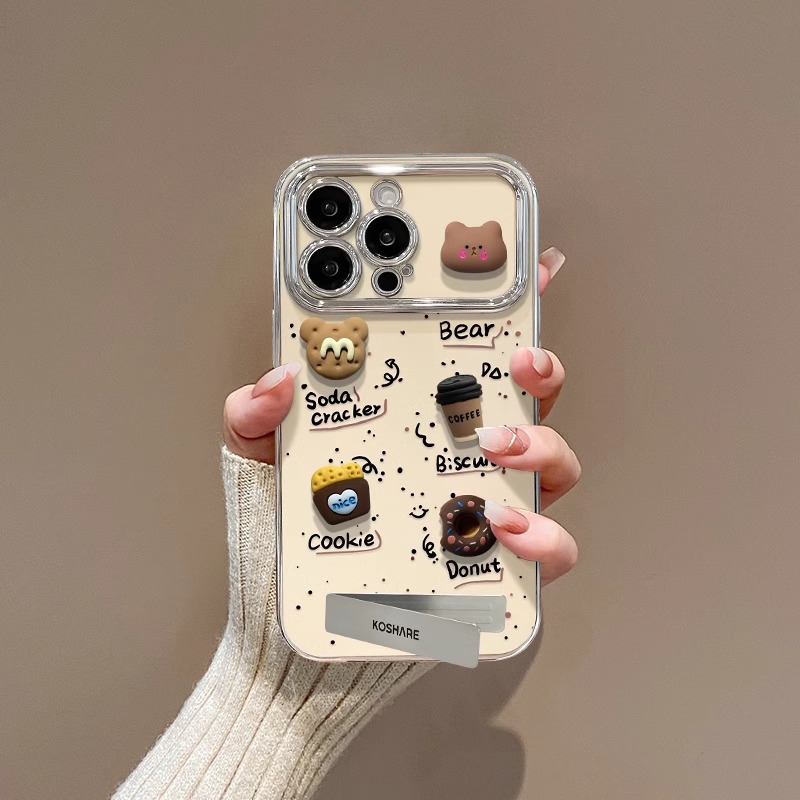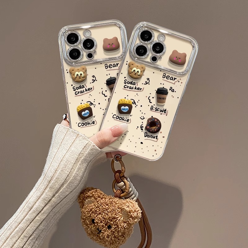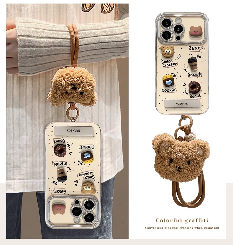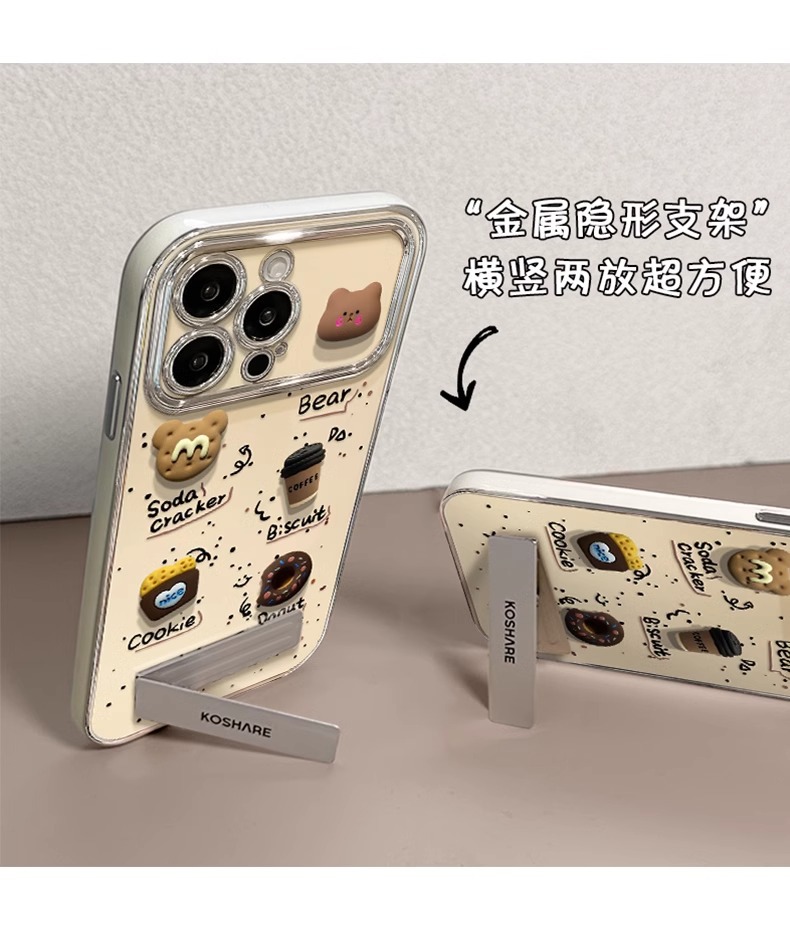 小熊饼干支架挂绳适用苹果15手机壳iphone16pro电镀6D视窗13硅胶X