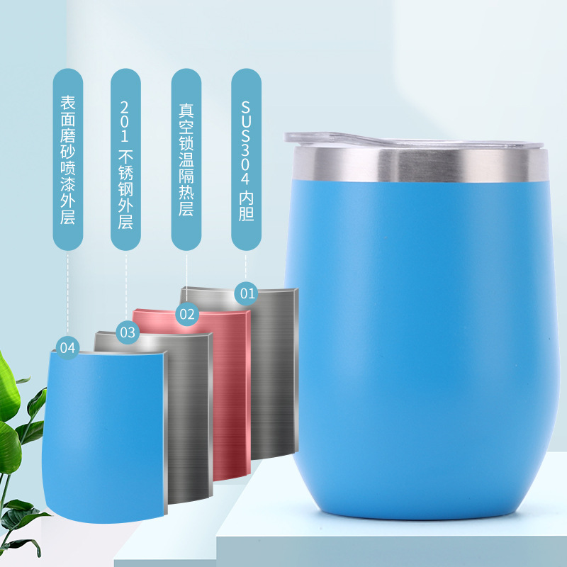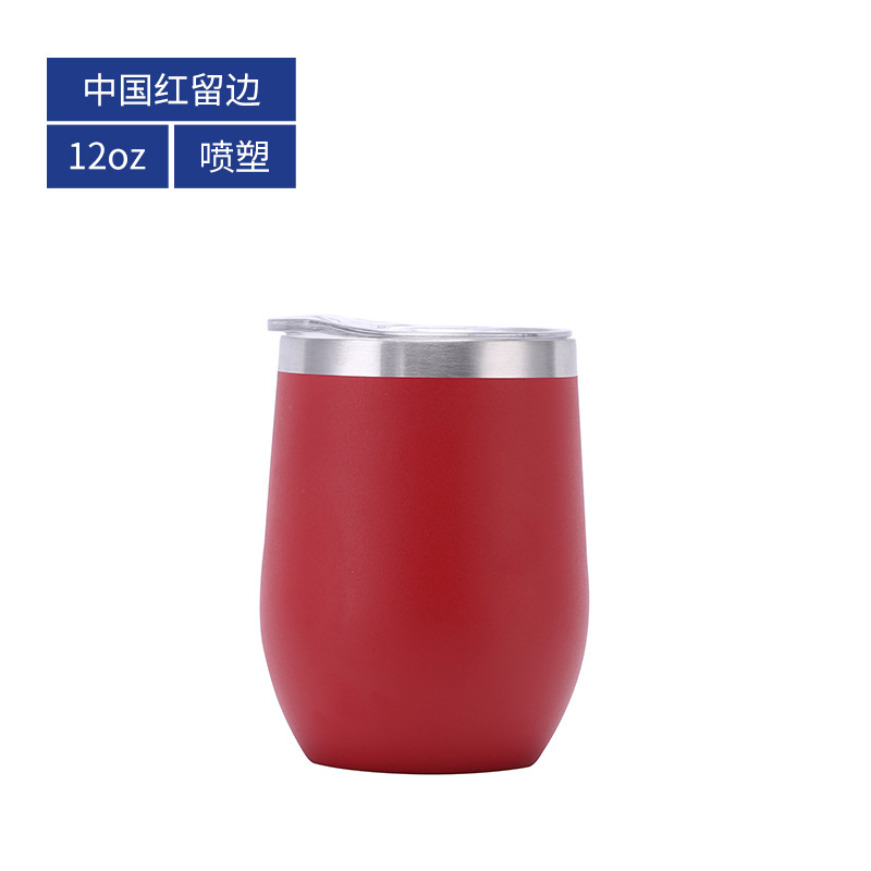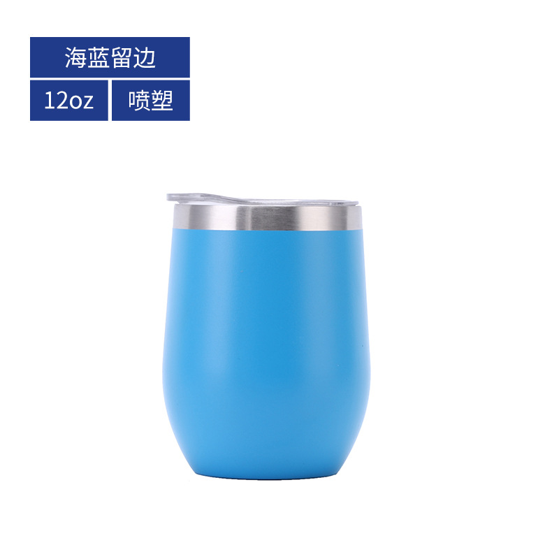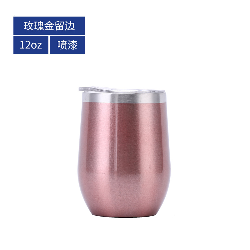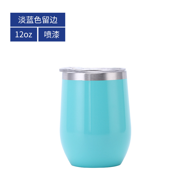 批发亚马逊蛋壳杯内304不锈钢红酒杯彩虹漆保温U型大肚鸡蛋杯