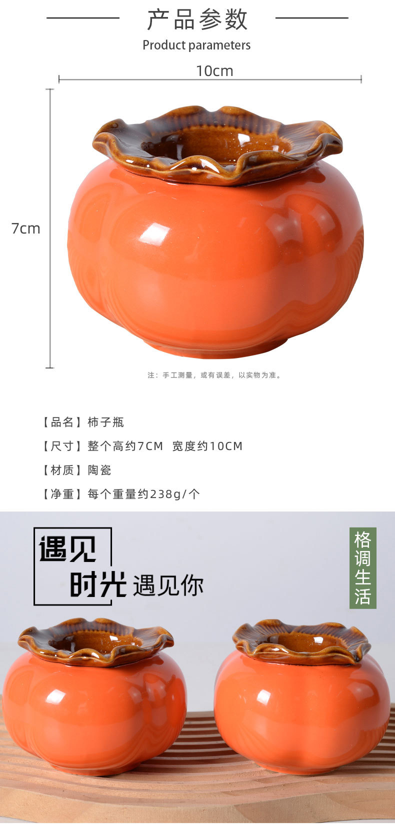陶瓷柿子喜庆柿柿如意花盆装饰花瓶创意中国风年宵花摆件罐子器皿