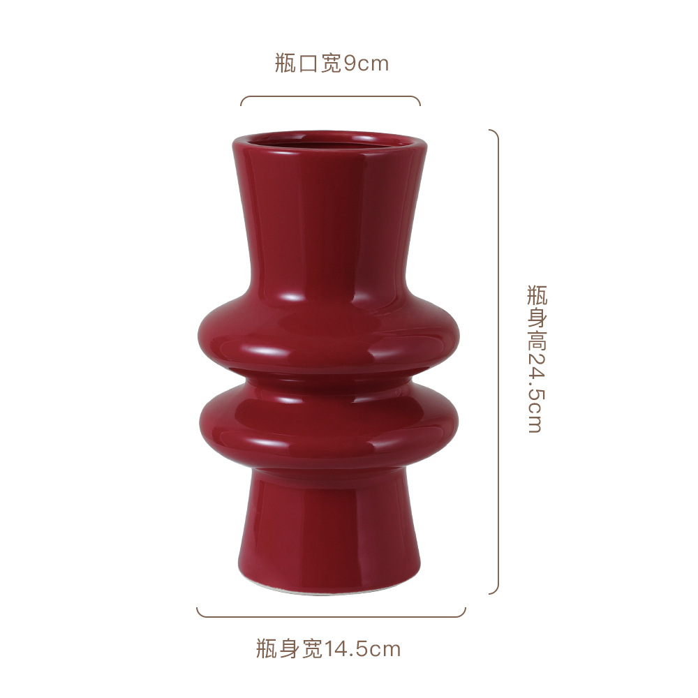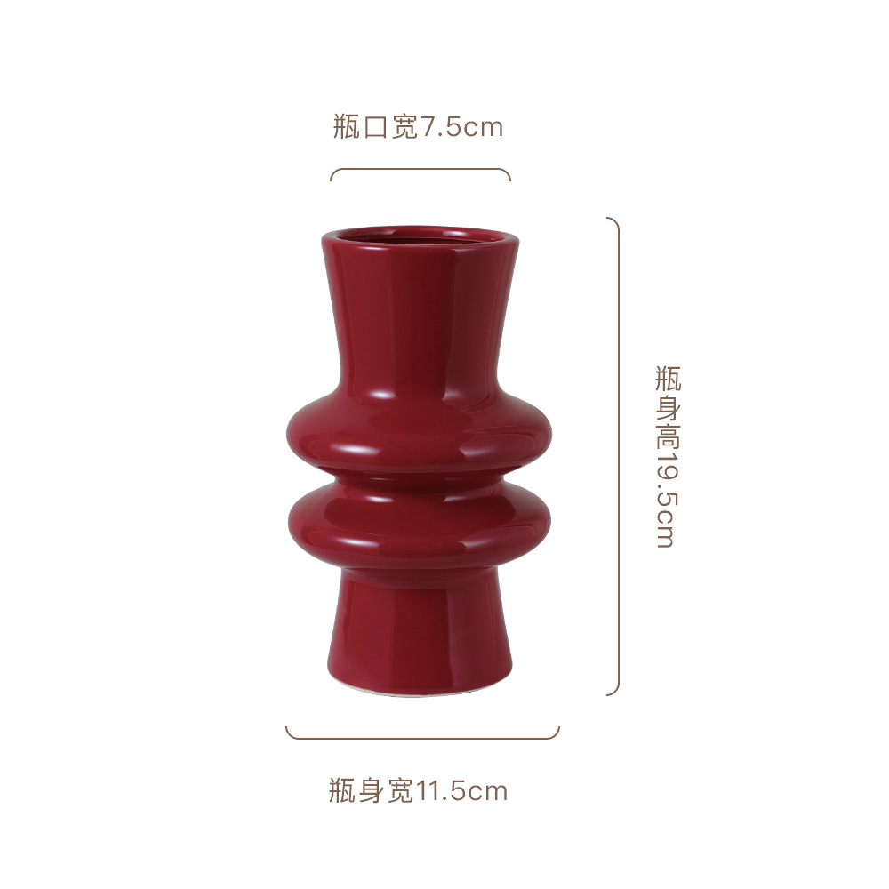 ins风陶瓷花瓶中古高级感复古高颜值摆件法式水培插花器大肚红色