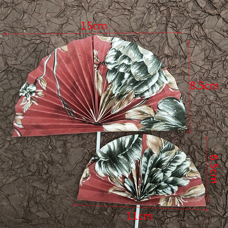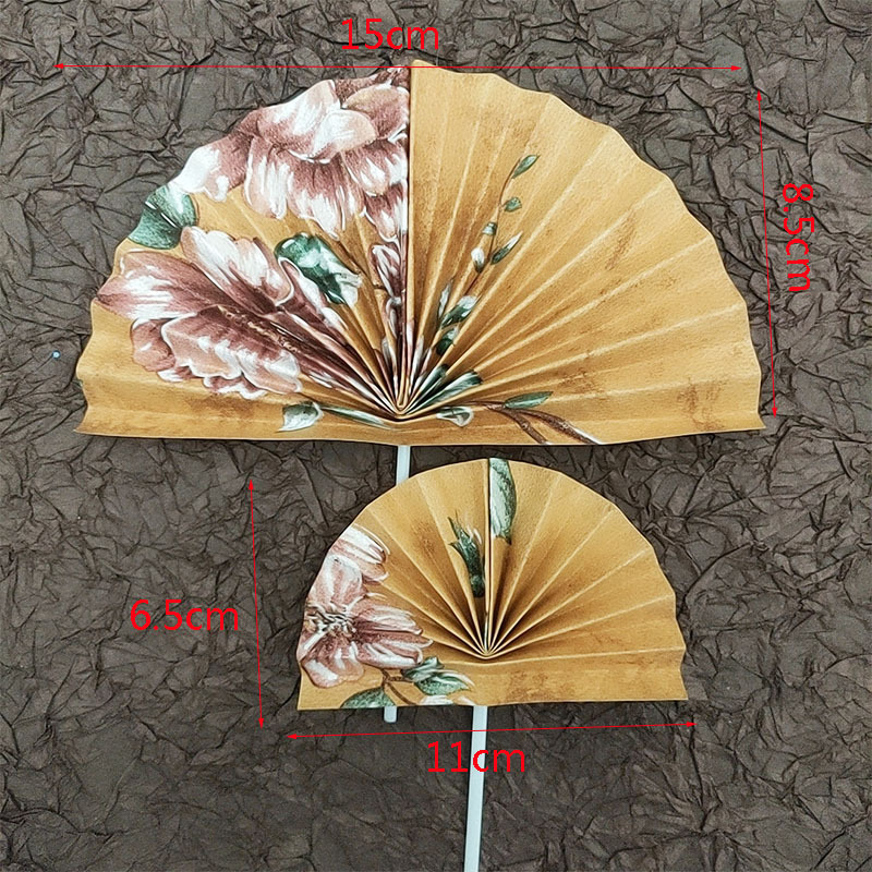 新款国风蛋糕装饰木棉纸折扇 新中式古风蛋糕装饰甜品台插件扇子
