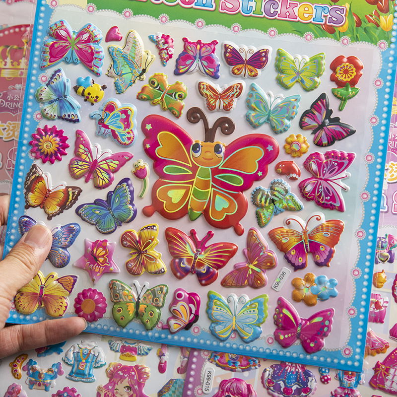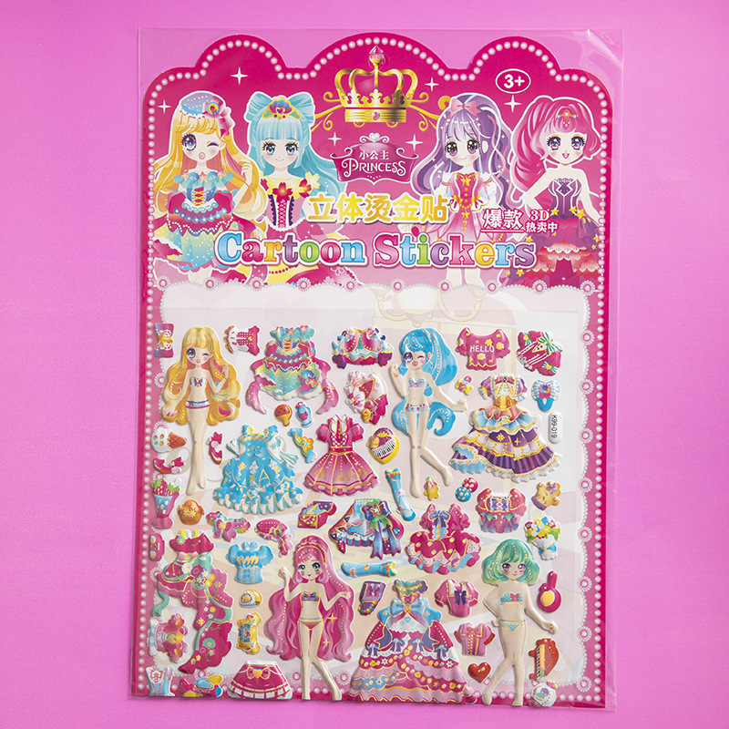 女孩儿童随意贴不脱壳凹凸PVC立体贴画立体3D工艺粘贴纸泡泡贴