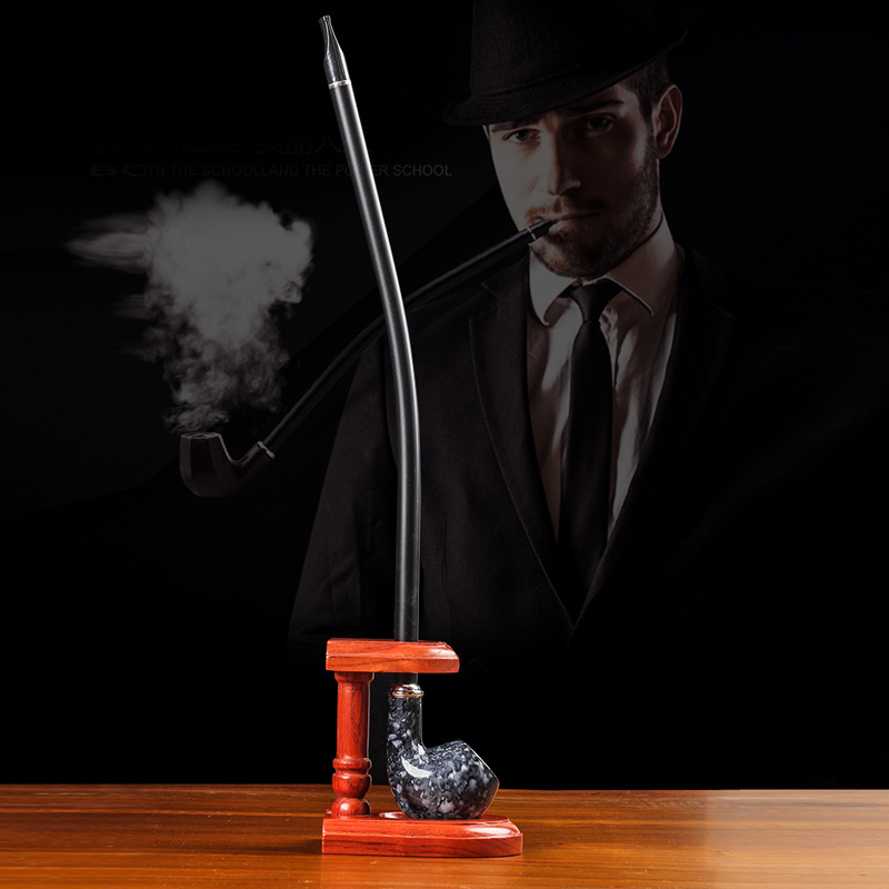 长丰长柄烟斗红色实木41cm加长过滤烟斗烟丝斗大号阅读旱烟杆705