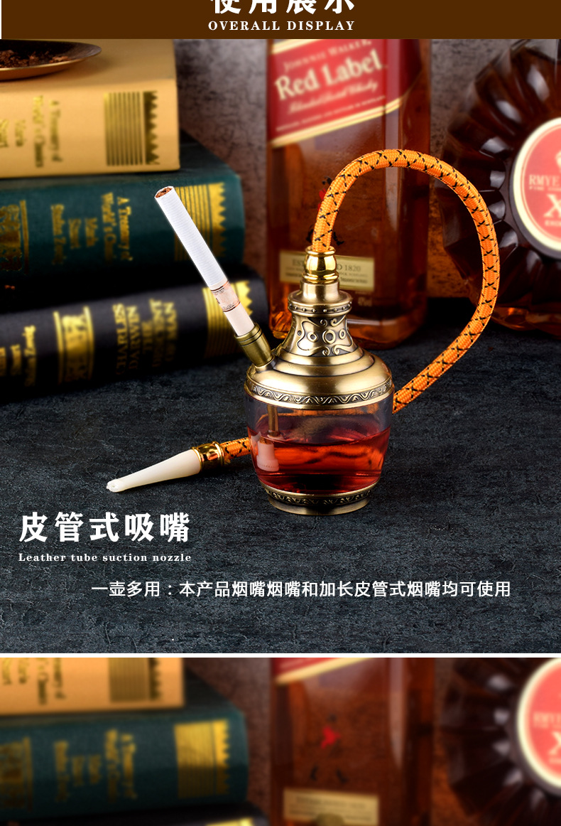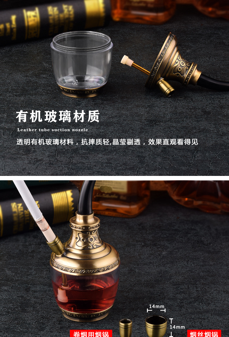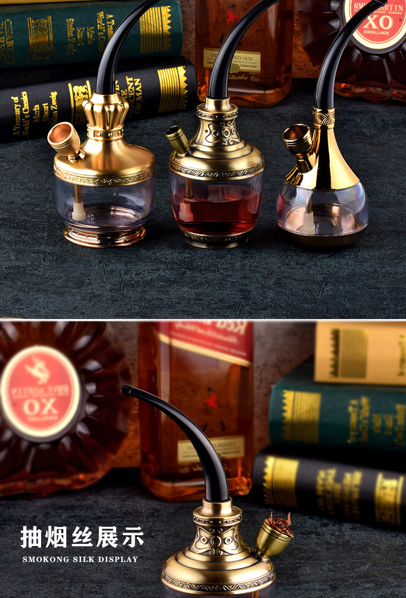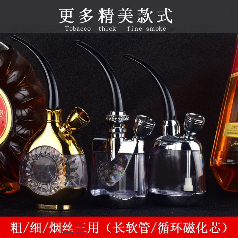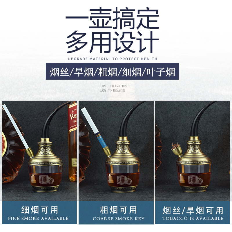 亨达三用水烟壶过滤水烟斗男士烟嘴香烟丝水烟筒袋锅便携全套