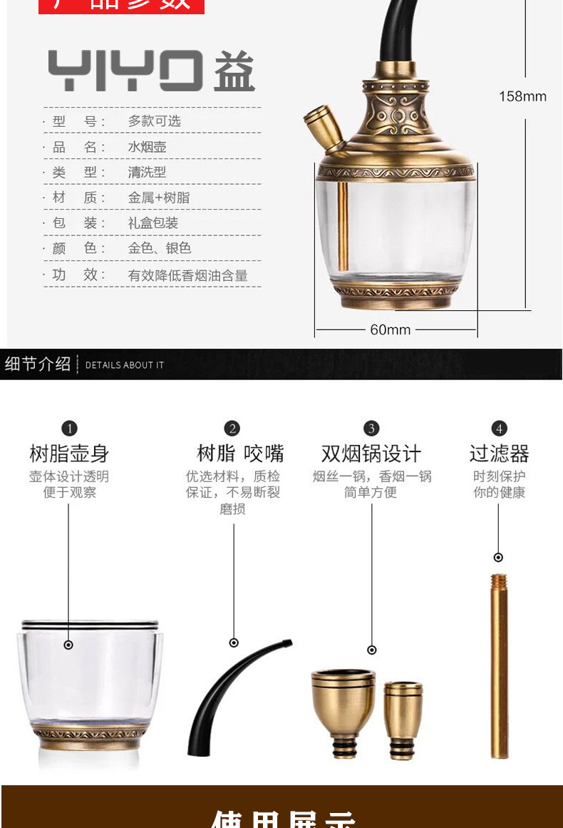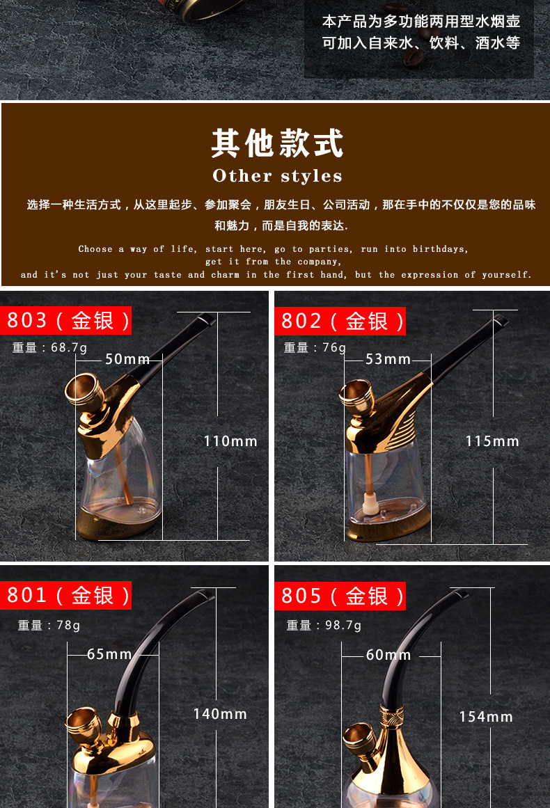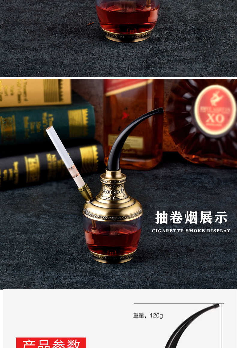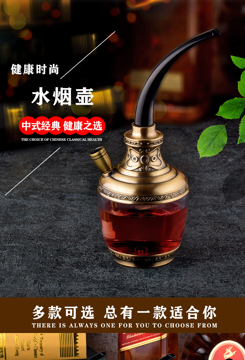 亨达三用水烟壶过滤水烟斗男士烟嘴香烟丝水烟筒袋锅便携全套
