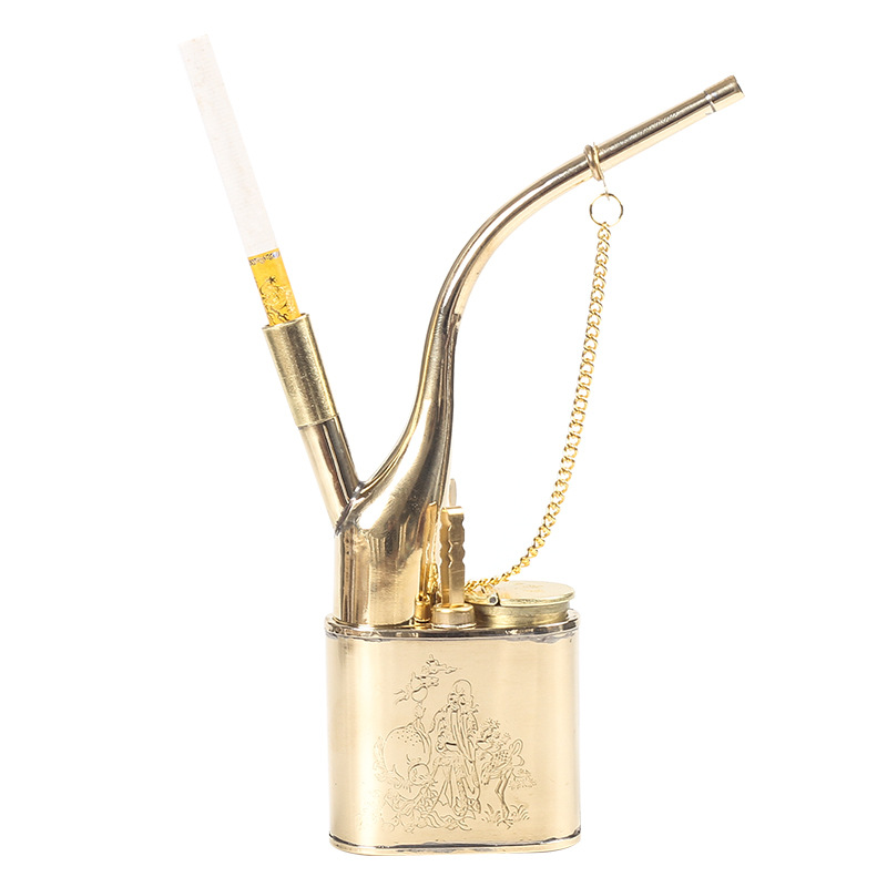黄铜水烟壶便携老式烟袋锅过滤寿星卷烟/烟丝两用烟斗老年人901