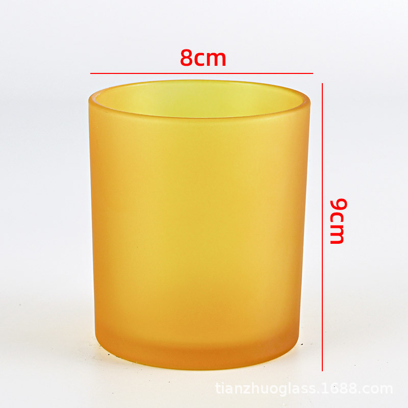 厂家批发DIY蜡烛杯彩色磨砂玻璃容器香薰空杯卧室内浪漫烛台logo