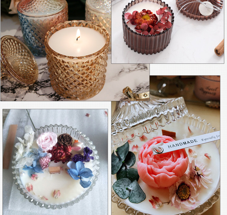 手工蜡烛浮雕玻璃烛台无火香薰蒙古包装饰品水晶空杯子透明圆