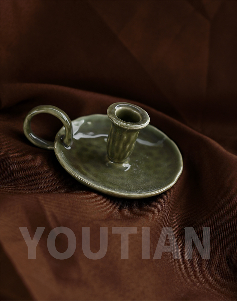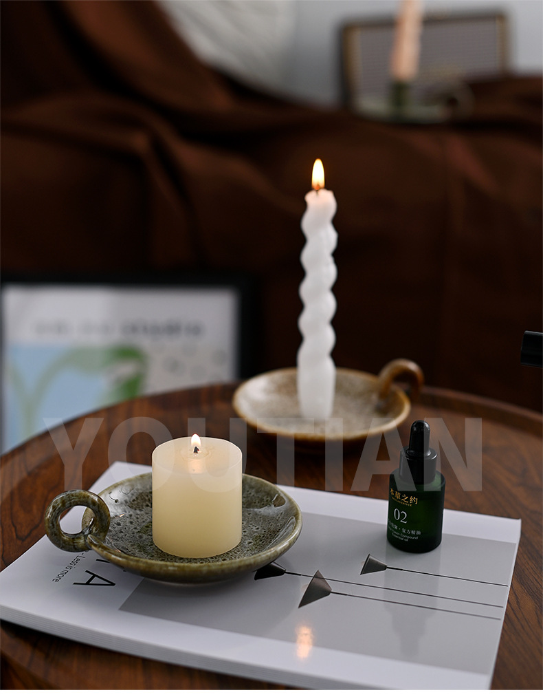 北欧简约复古陶瓷烛台盘秘鲁圣木烧盘摆件鼠尾草香盘净化空气器皿