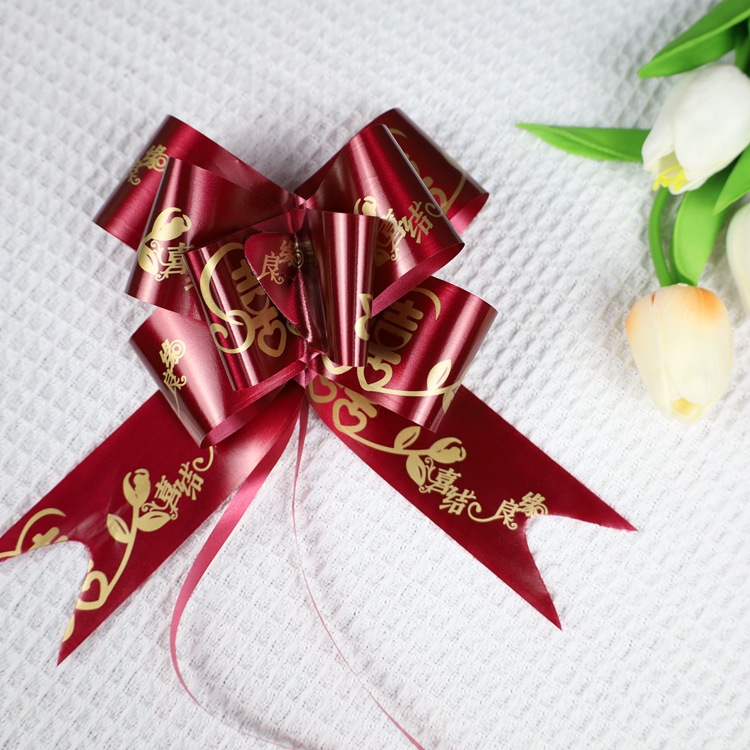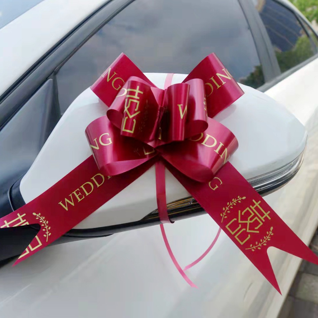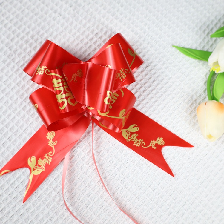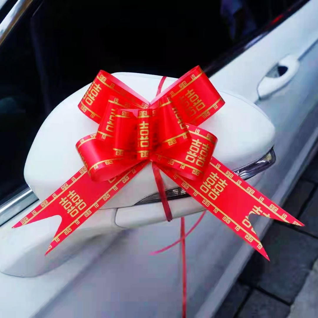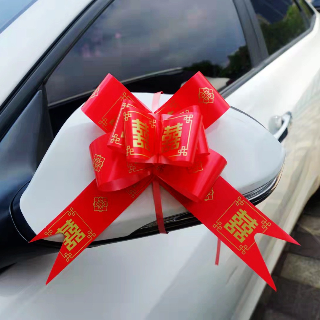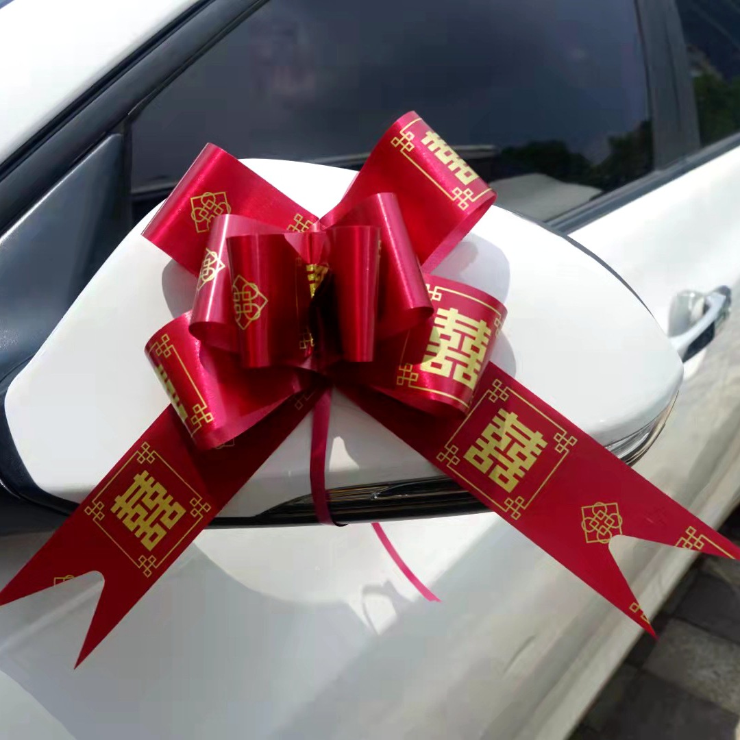 批发婚庆用品手拉花大红龙凤喜字手拉花5cm大号婚车装饰车门拉花