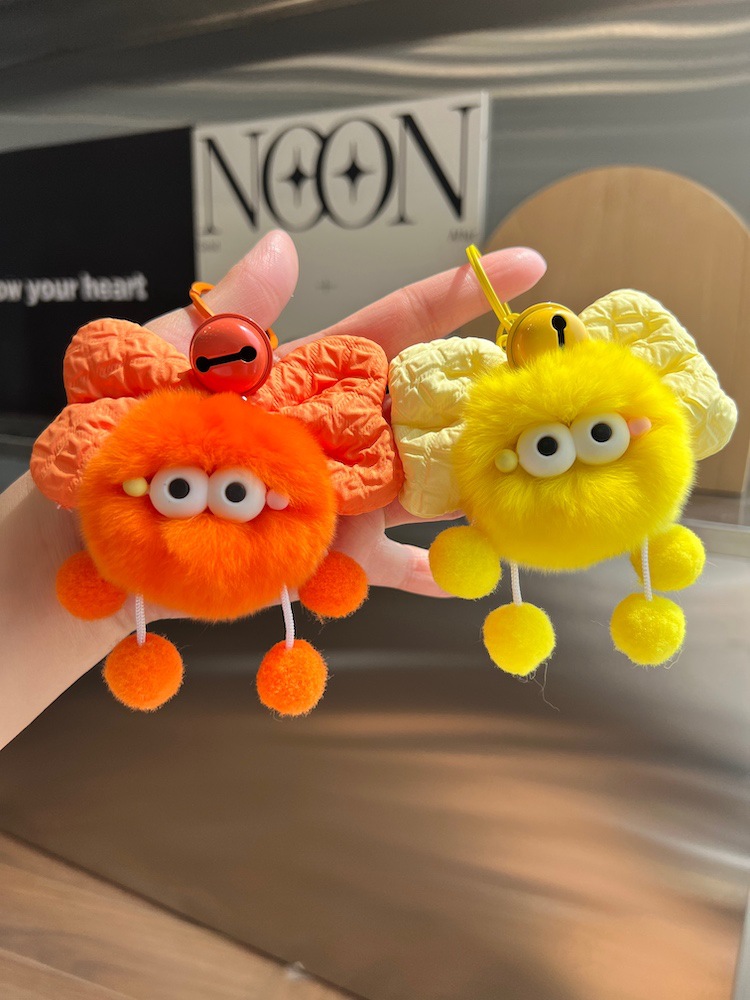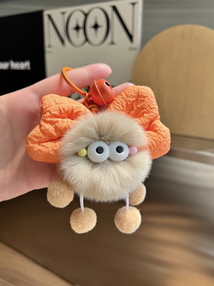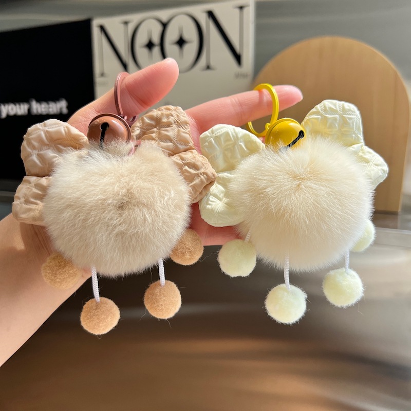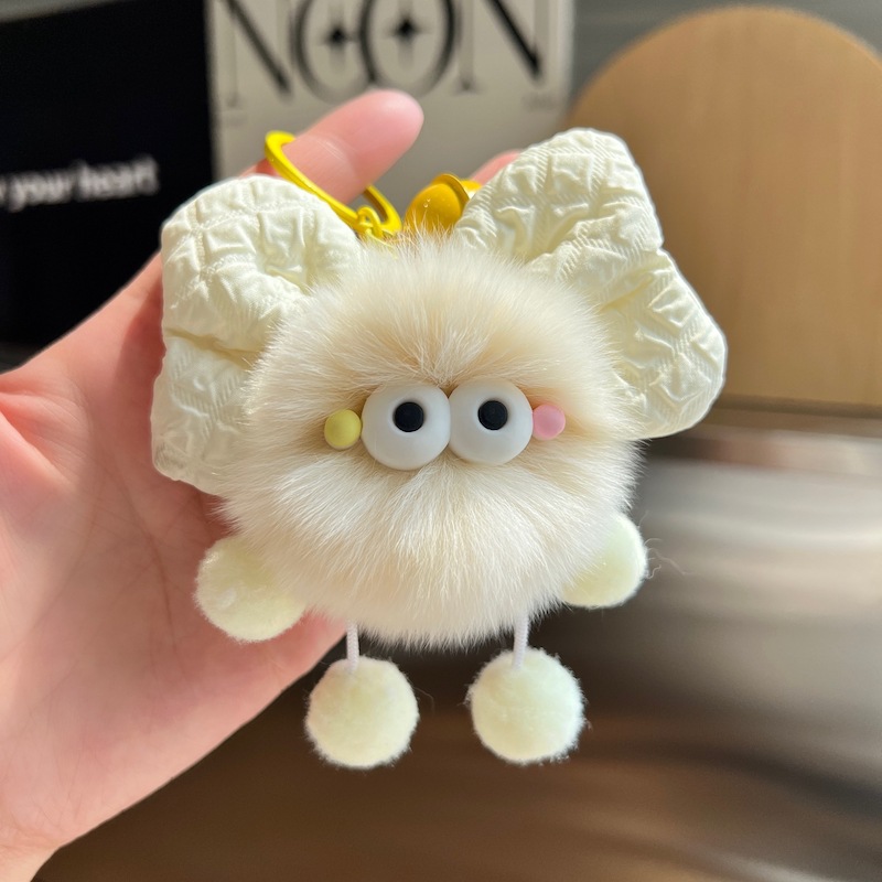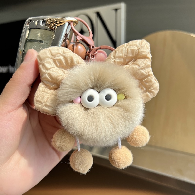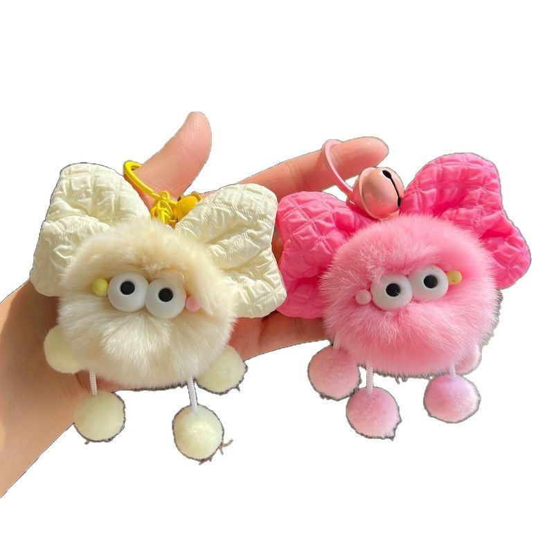 新款创意兔毛蝴蝶结小煤球挂件少女心书包包挂饰车钥匙扣配饰女
