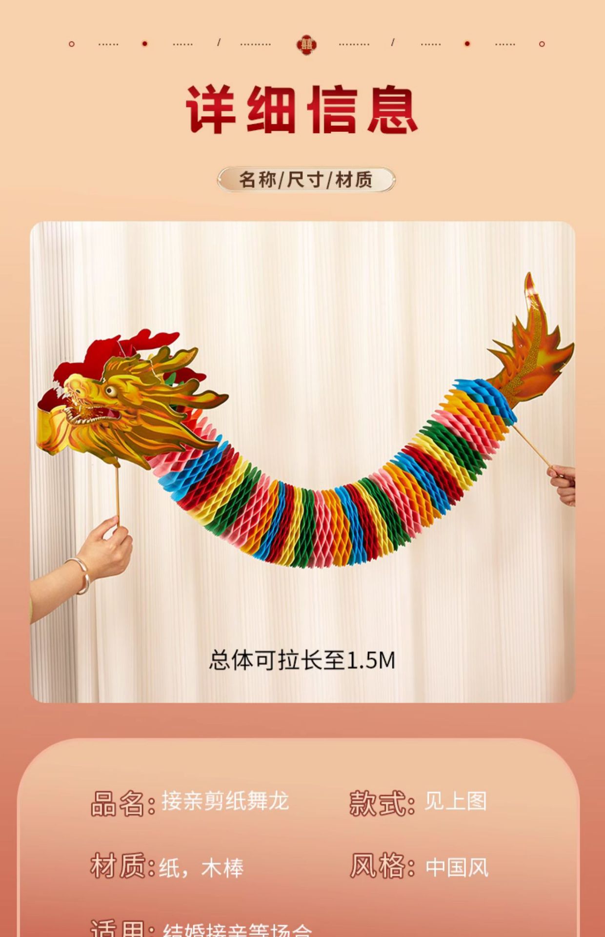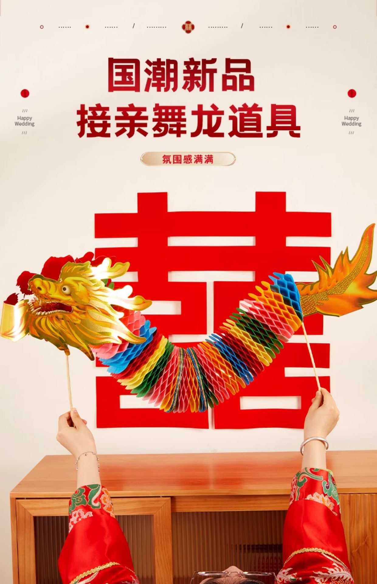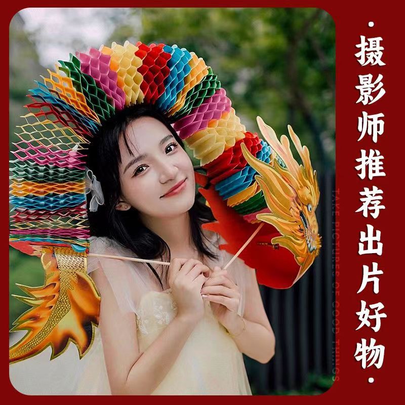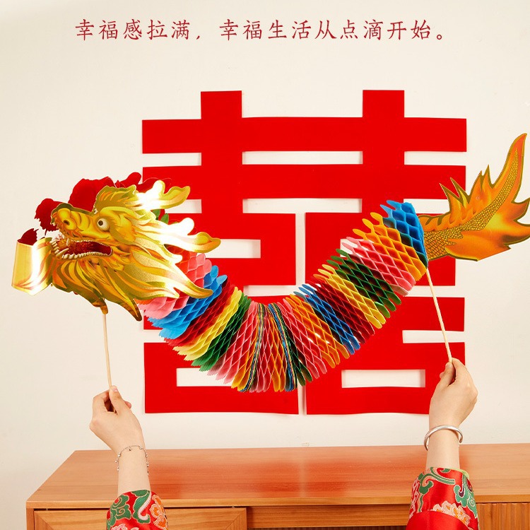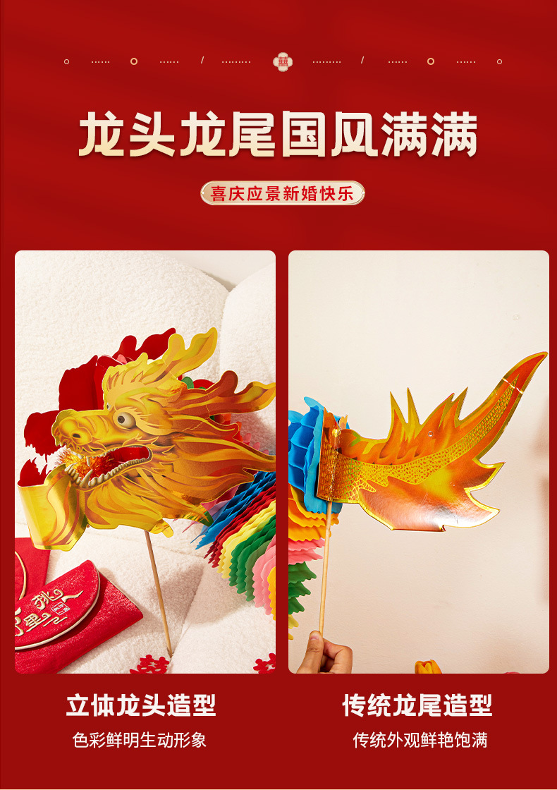 剪纸舞龙成品小红书同款晨袍拍照道具结婚接亲游戏道具手持龙批发