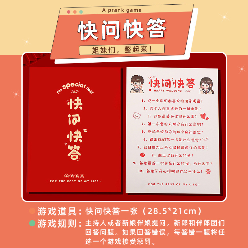 结婚接亲游戏道具创意婚礼堵门全套文明搞笑新郎拦门整蛊套餐
