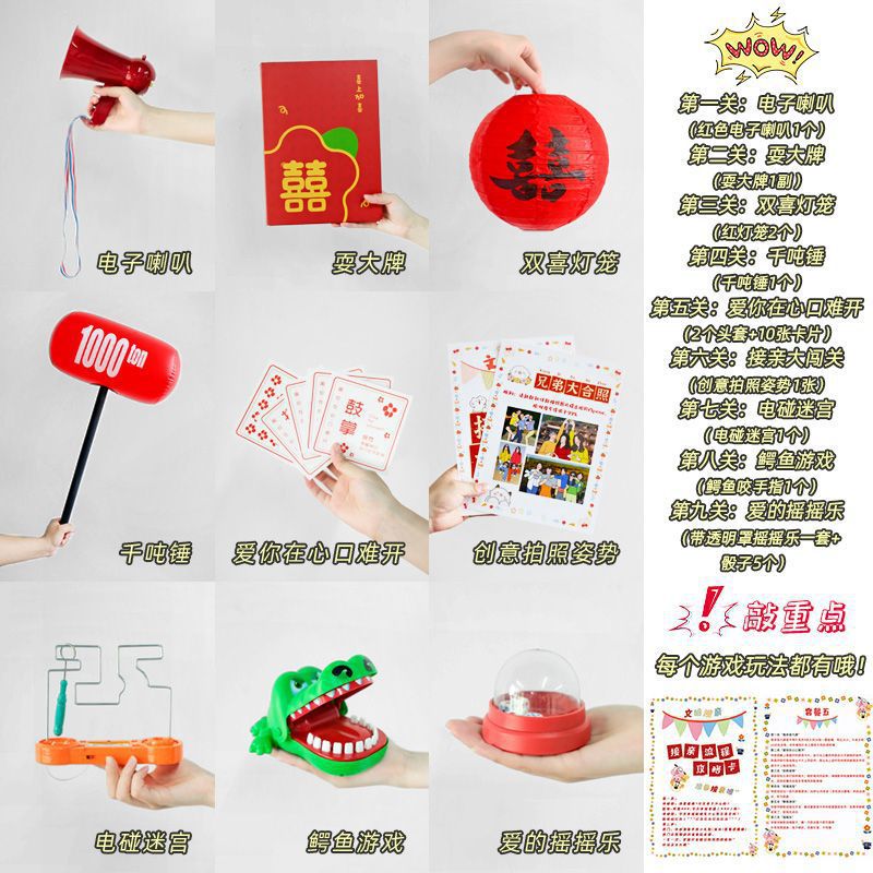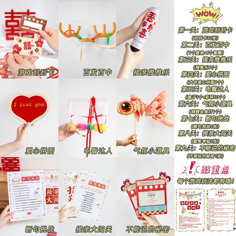 接亲结婚小游戏道具整蛊拦门堵门晨袍新郎游戏卡卡片套装拍照创意