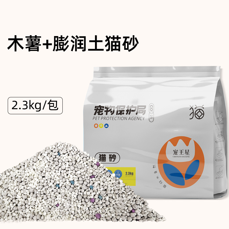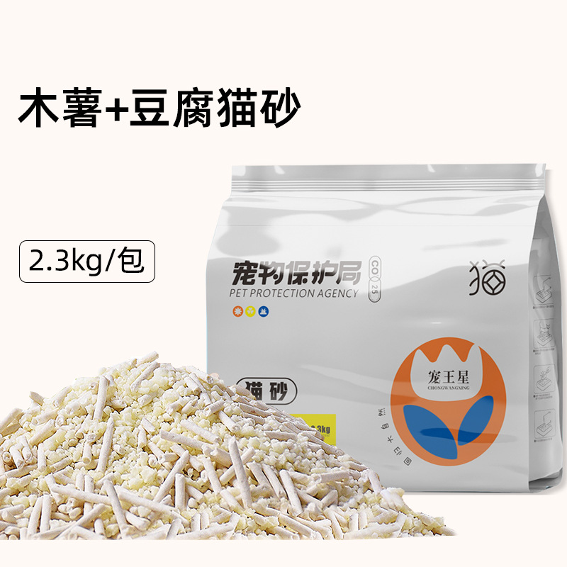 新款豆腐猫砂除臭低尘秒结团可冲厕所混合豆腐猫砂2.3kg厂家批发