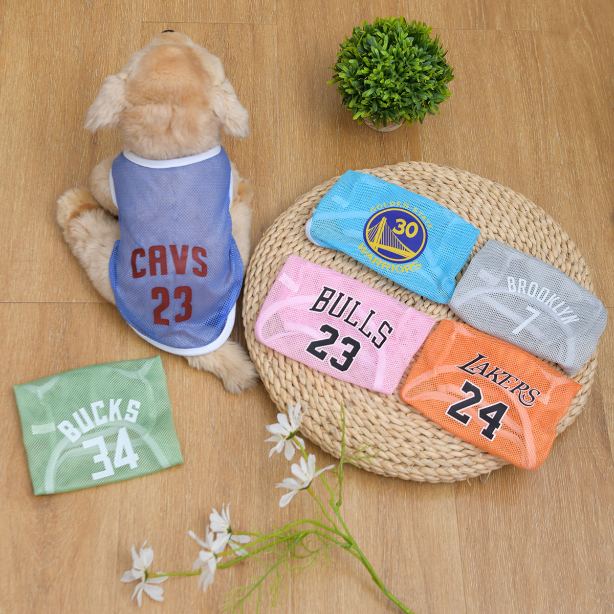 猫狗衣服春夏网格背心薄款透气卡通印花背心比熊金毛柯基中大型犬