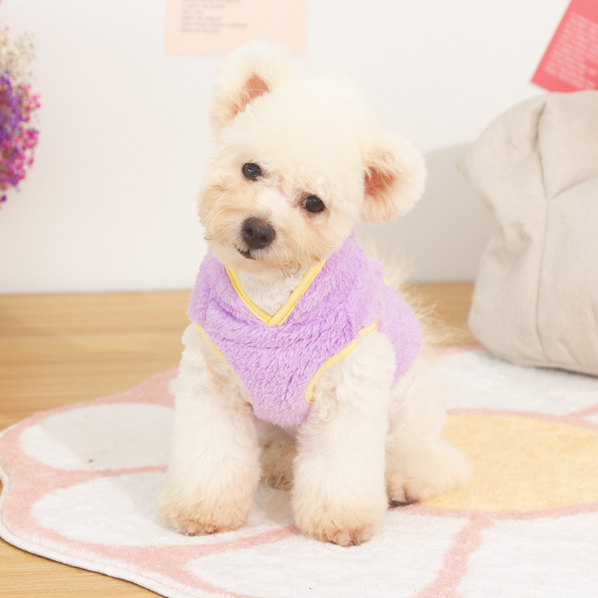 新款狗狗衣服宠物服秋冬季双面长毛绒高领保暖可爱牵引环厂家直销