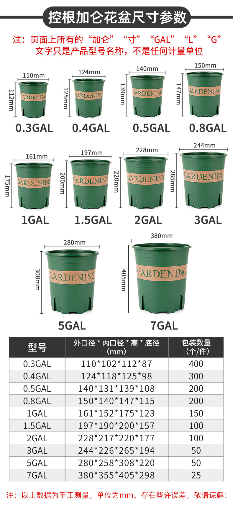 矮胖7加仑盆3控根青山盆黑色塑料花盆批发绿萝育苗盆月季加仑花盆