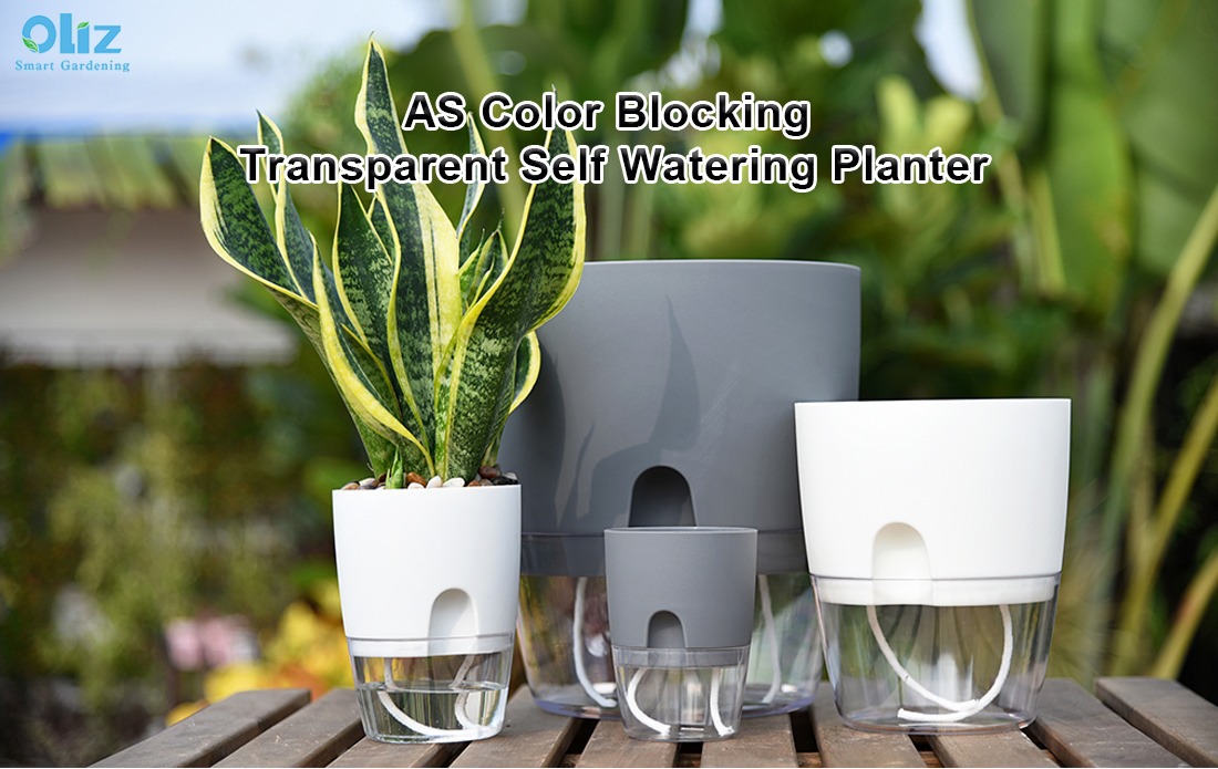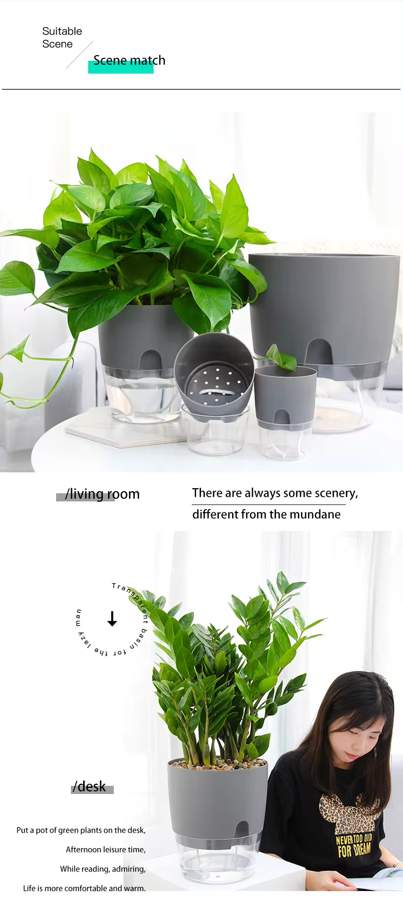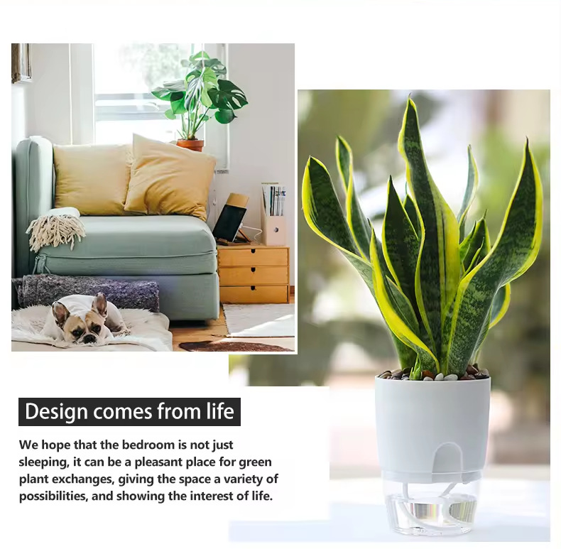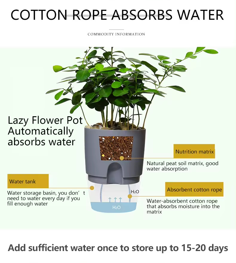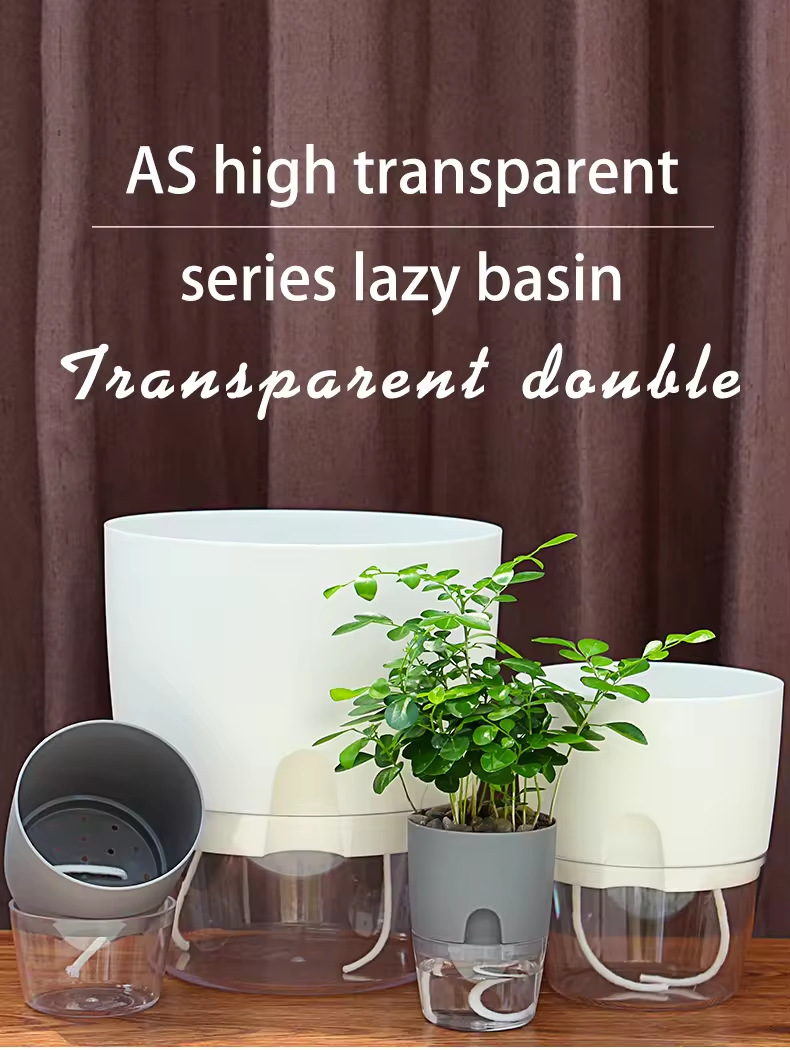 跨境工厂现货批发透明塑料懒人花盆双层简约自吸水棉绳亚马逊园艺