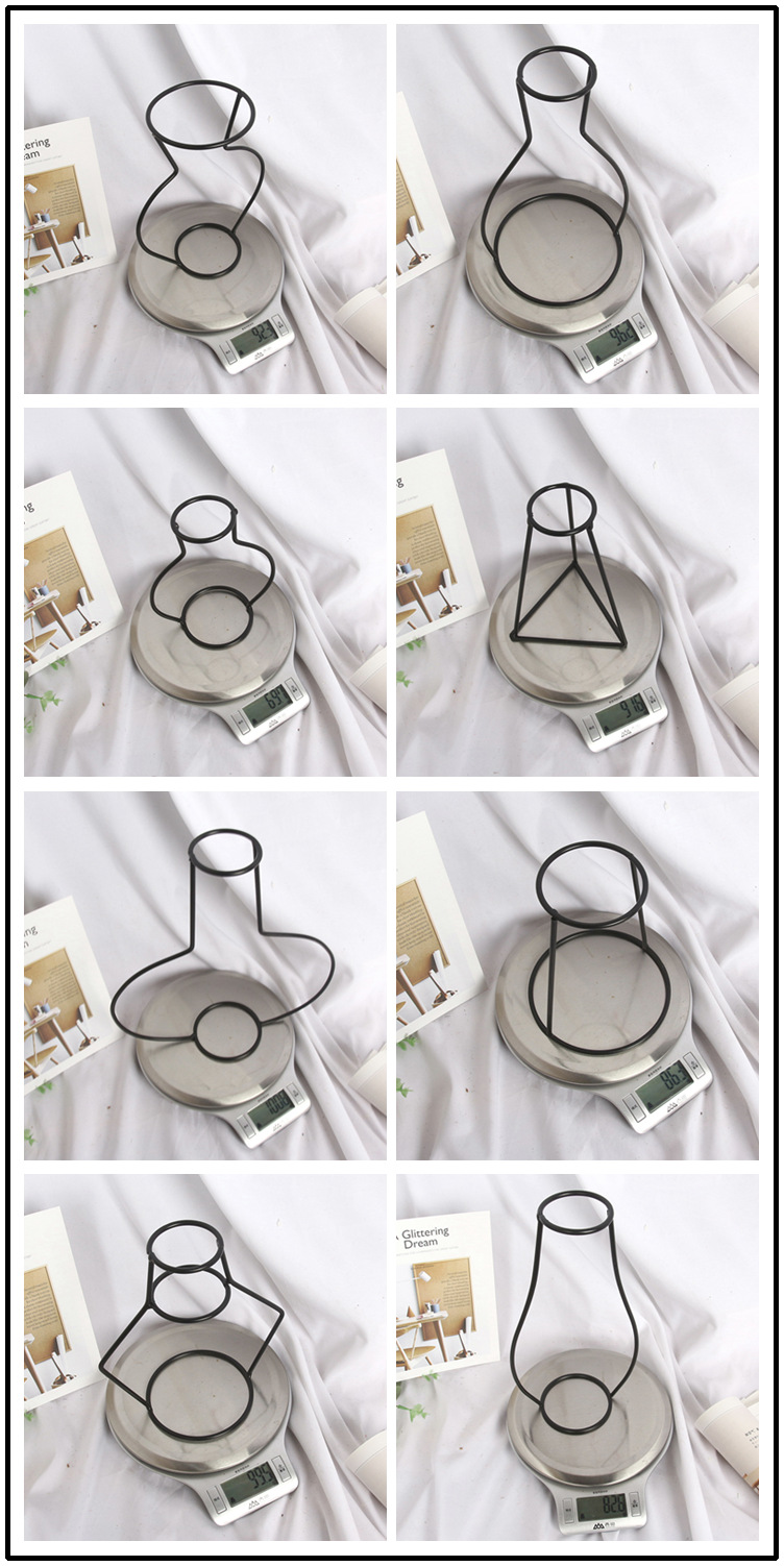 ins风!铁丝花瓶干鲜仿真插花铁艺工艺品北欧风创意摆件花架