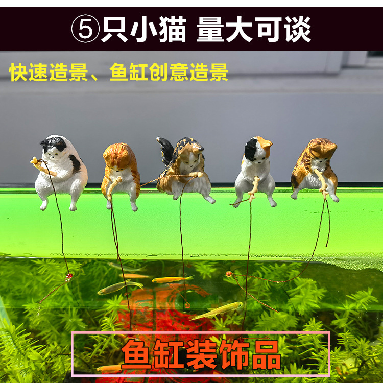 爆款钓鱼猫 鱼缸造景 好天气休闲猫咪垂钓 悬挂饰品现货厂家直发