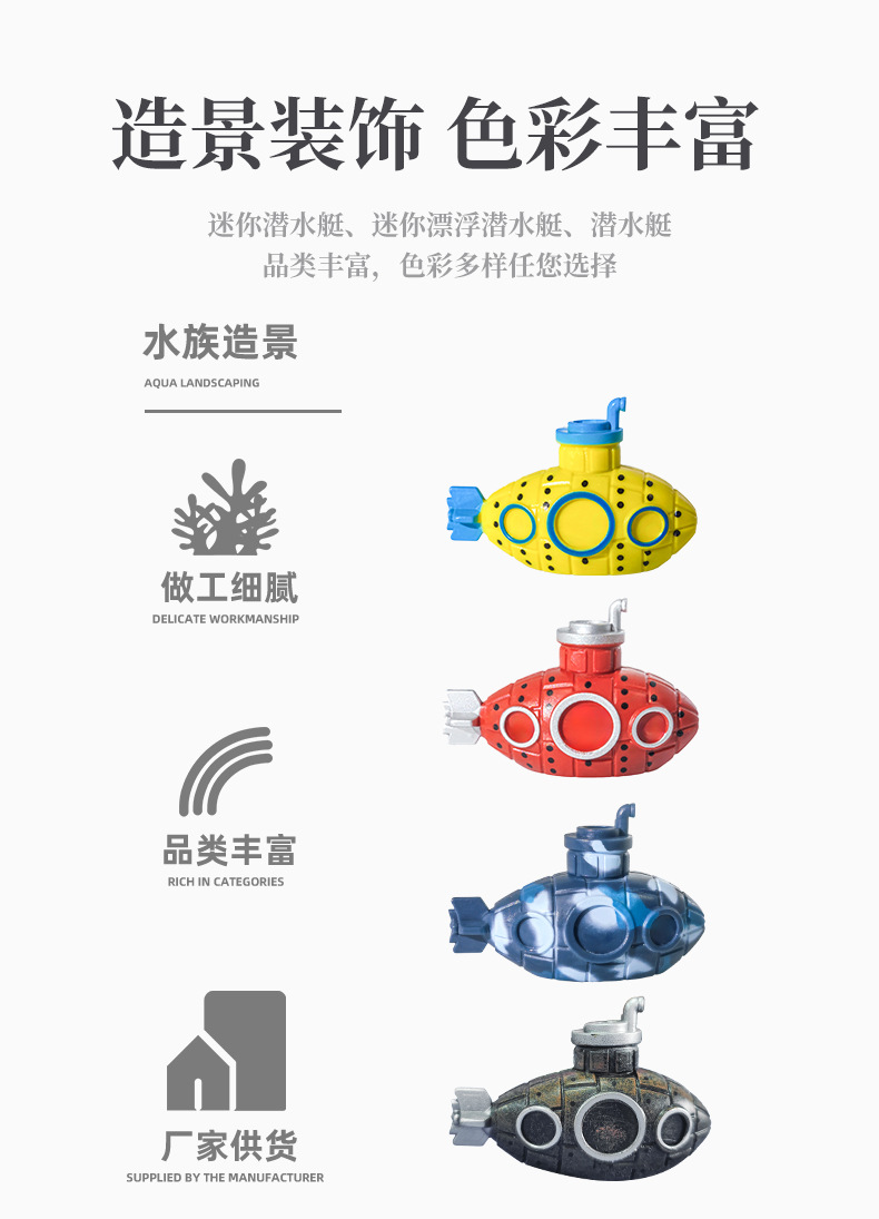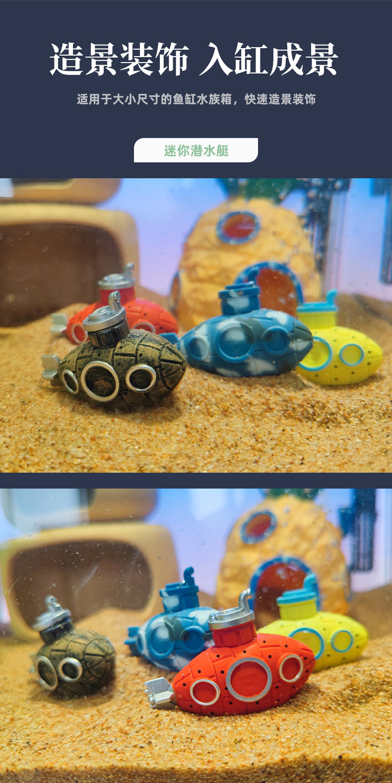 斗鱼缸儿童造景 迷你潜水艇微景观装饰 爆款观赏鱼缸新品海底世界