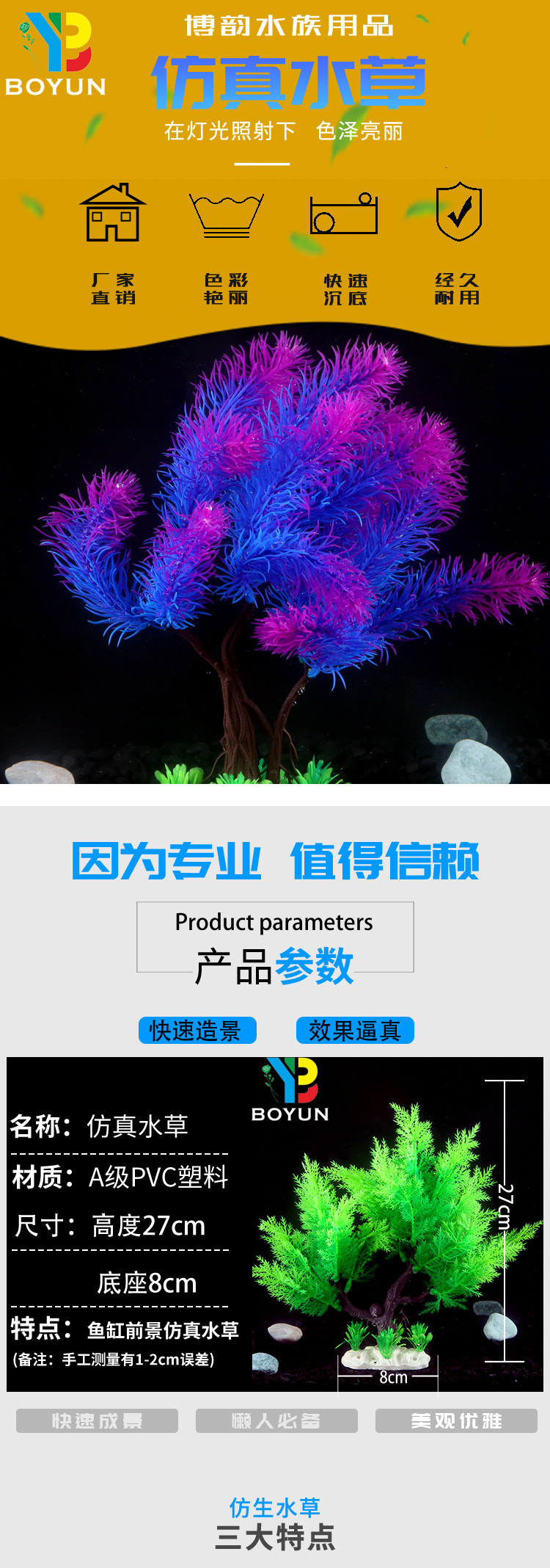 鱼缸造景摆件松针树植物仿真水草装饰品假水草造景塑料花现货批发